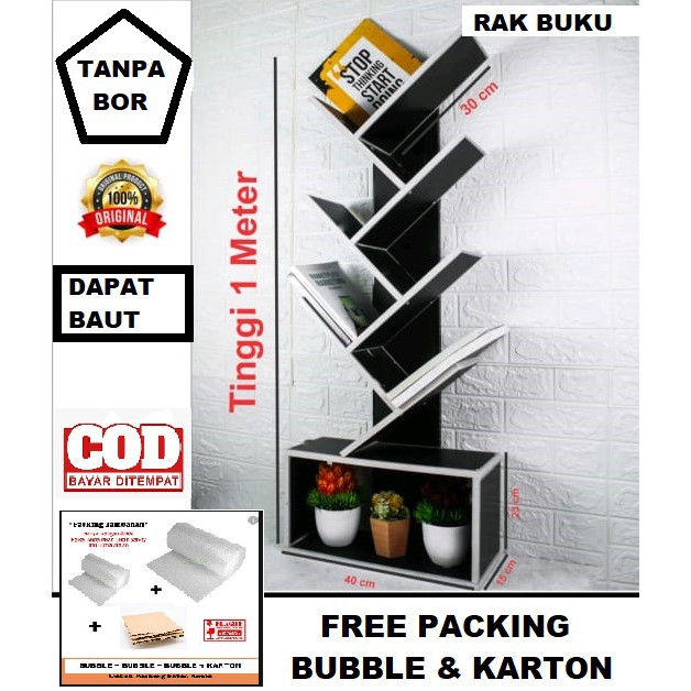 Rak Buku Lapis Hpl Gantung Lantai Dekorasi Minimalis Kuat 1 Meter