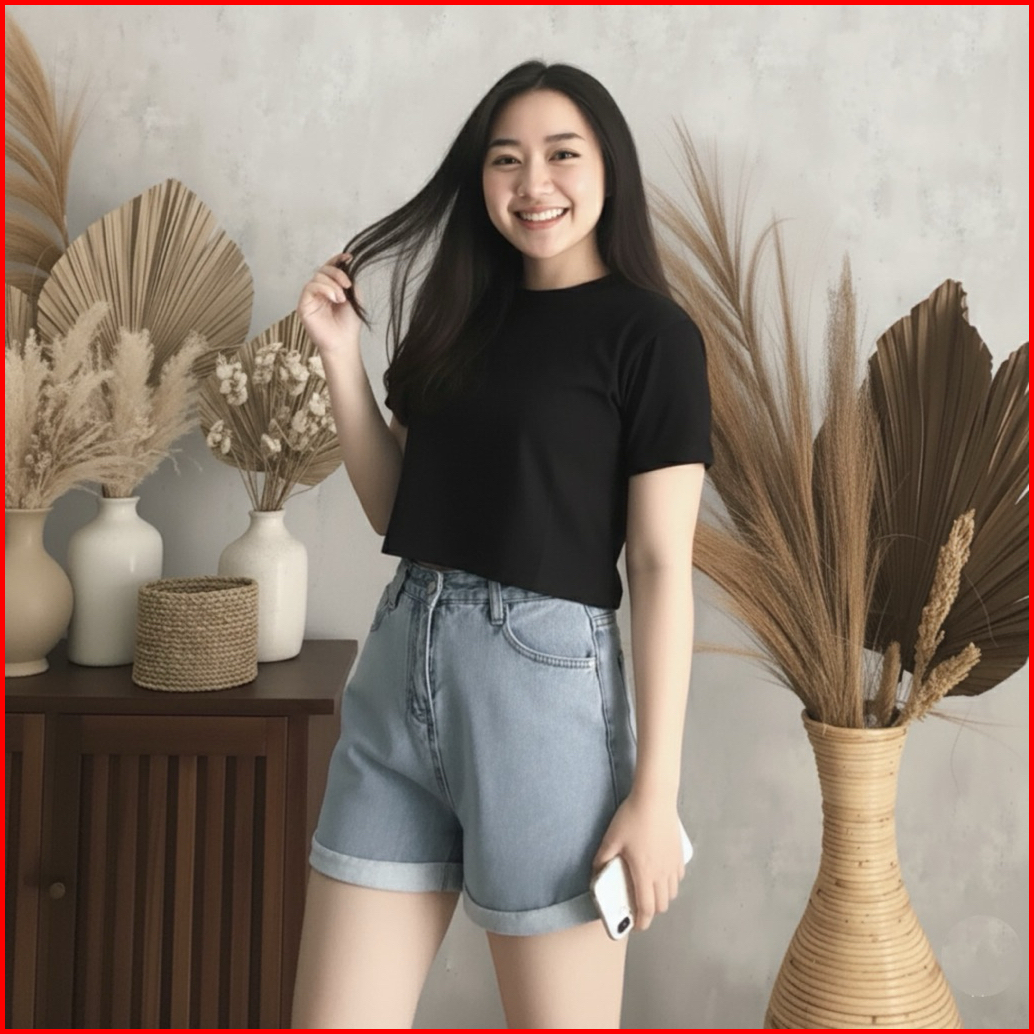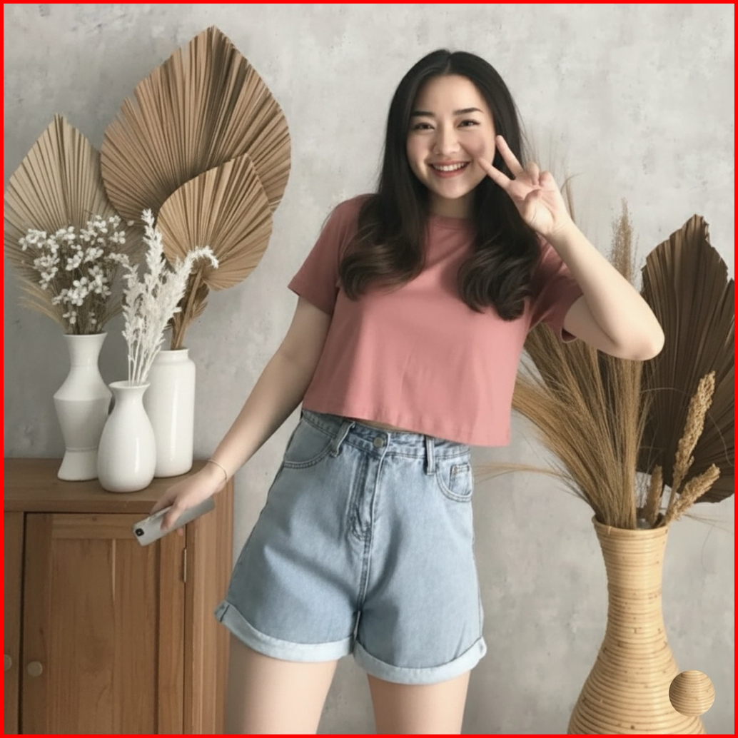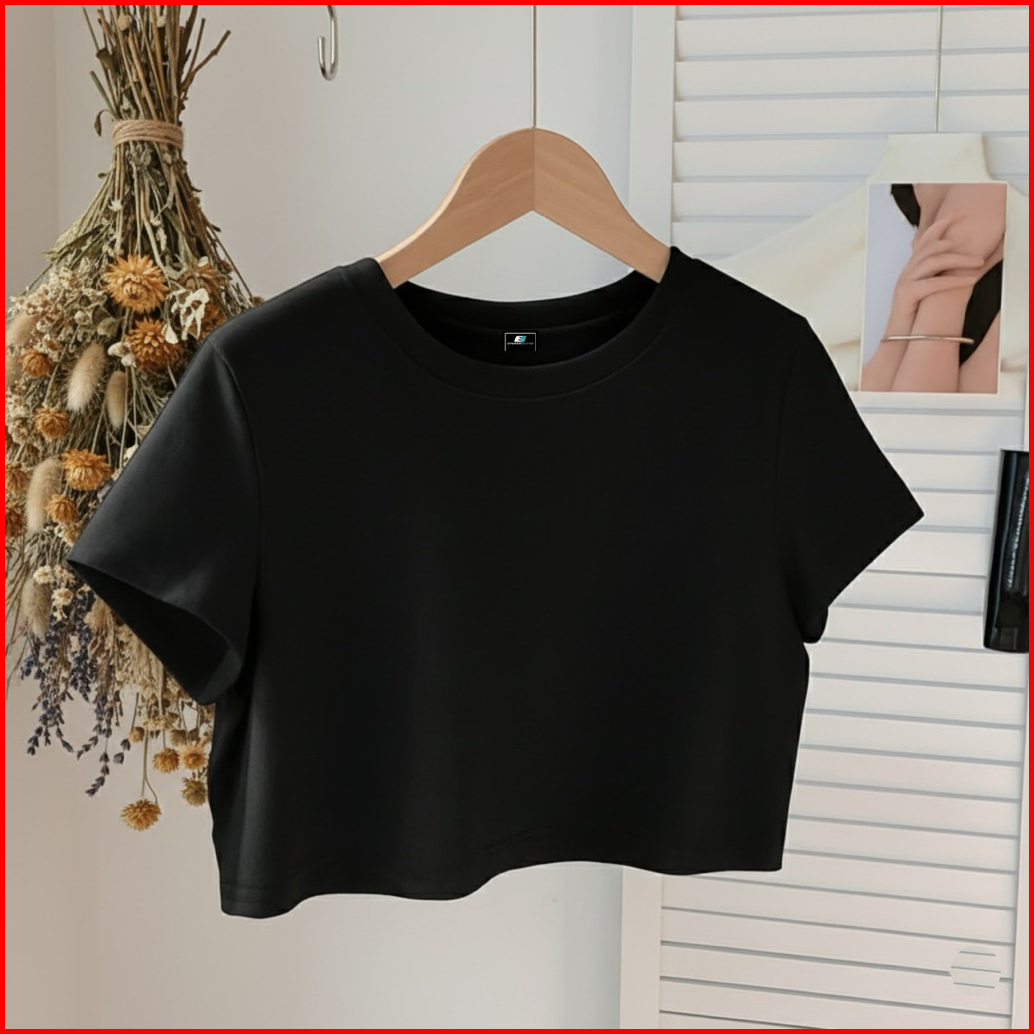 Enami Suns - Croptop Korea Kaos Wanita Cotton Soft Tebal Dan Lembut