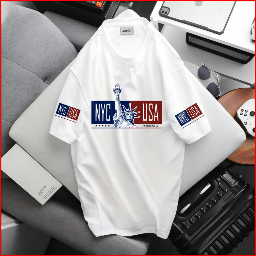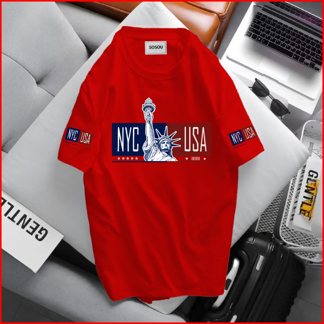 Sosou Kaos Distro Streetwear Nyc Usa Liberty Patung Kebebasan Tshirt Cotton 20s Regular Fit Fashion Pria Wanita K