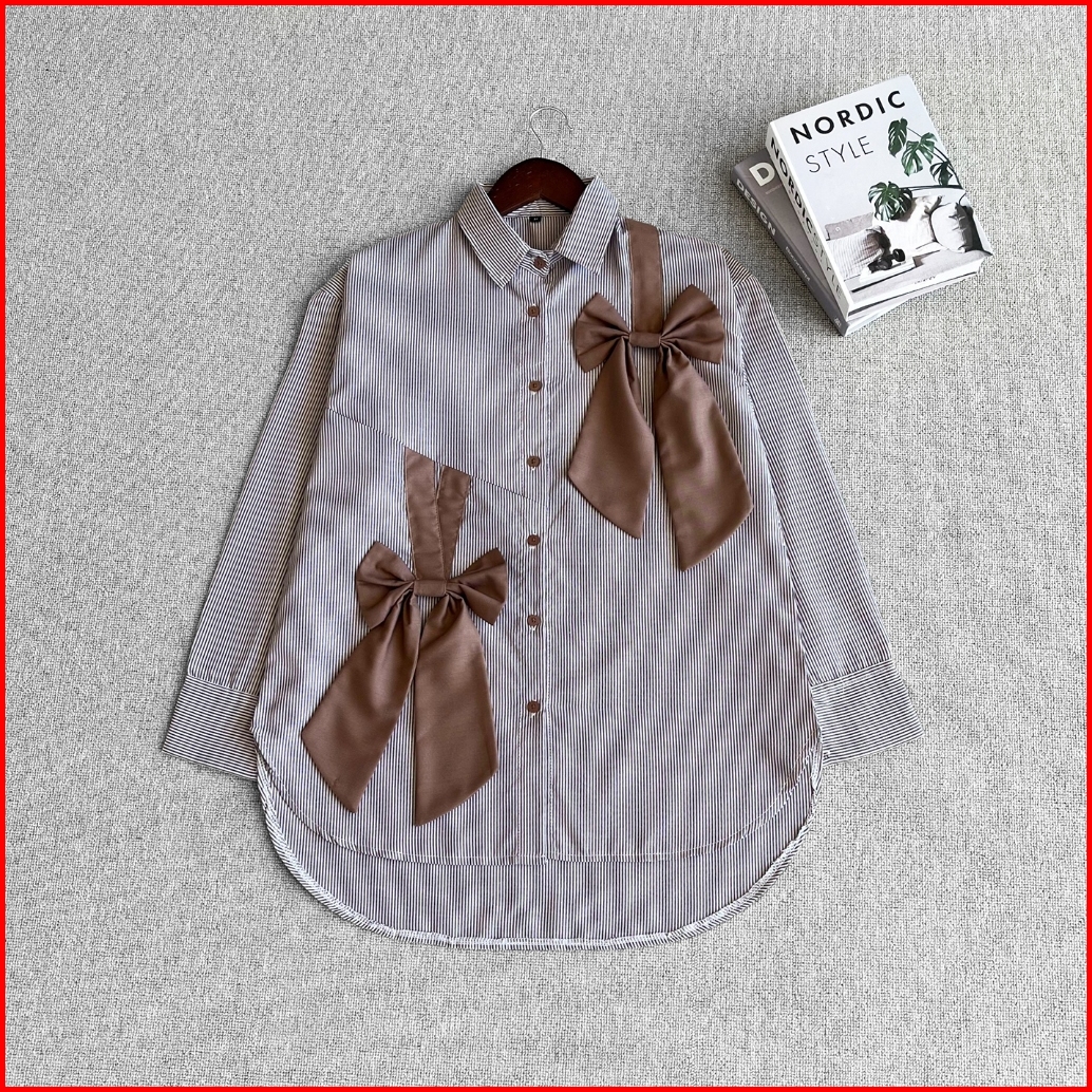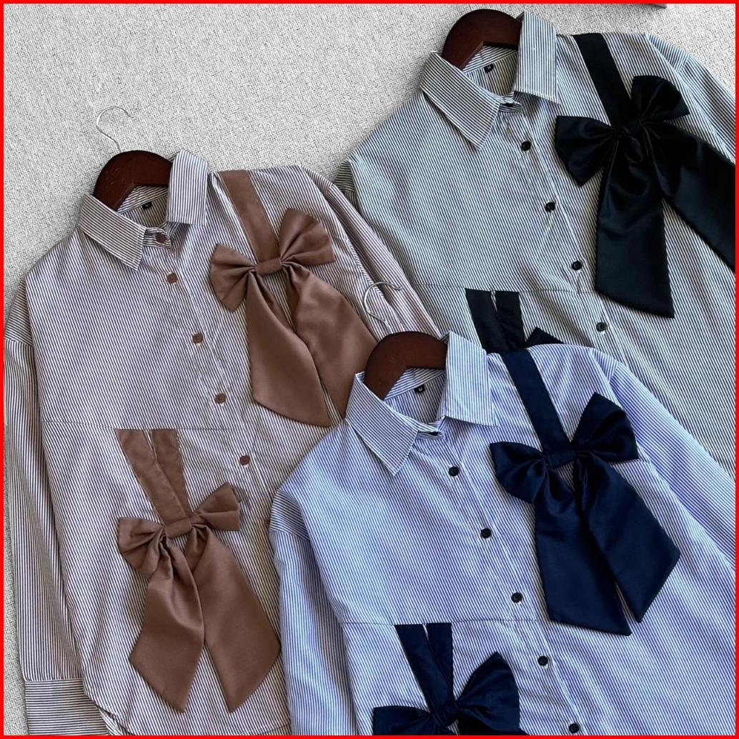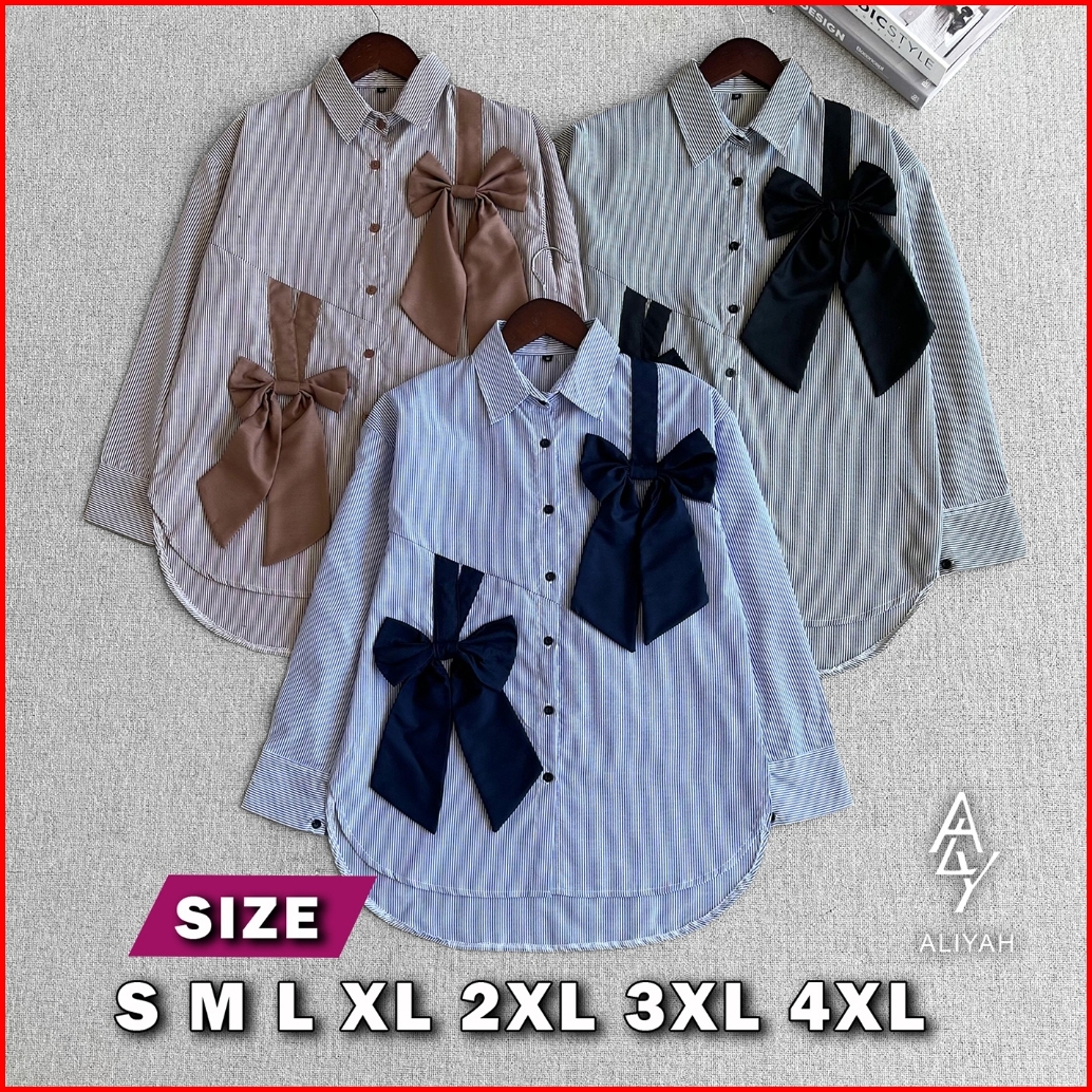 Velora Blouse Pita Jumbo Wanita Baju Muslim Modis Casual Elegan Atasan Kemeja Stripe Variasi Pita Hijab Friendly Daily W
