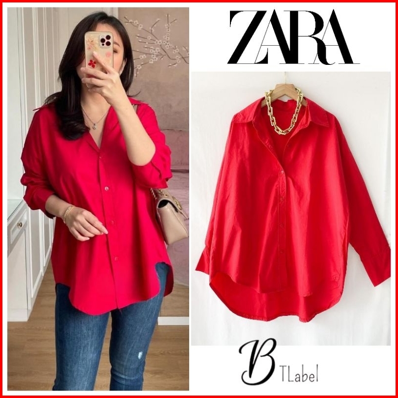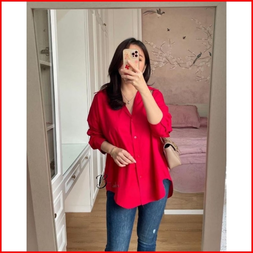 Btl L-6xl Kemeja Zra Basic Khusus Merah Cotton Premium
