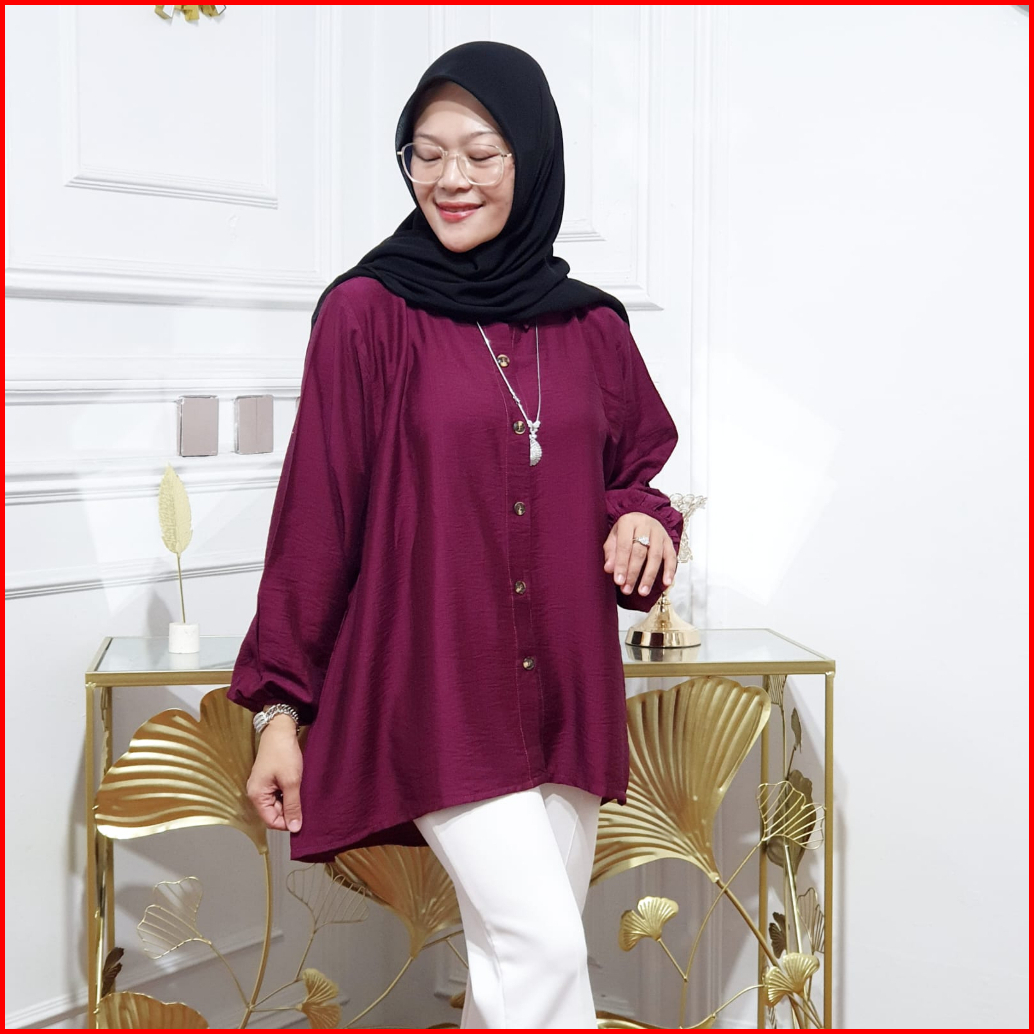 Kemeja Wanita Jumbo Ayyanna Bahan Polo Linen Premium
