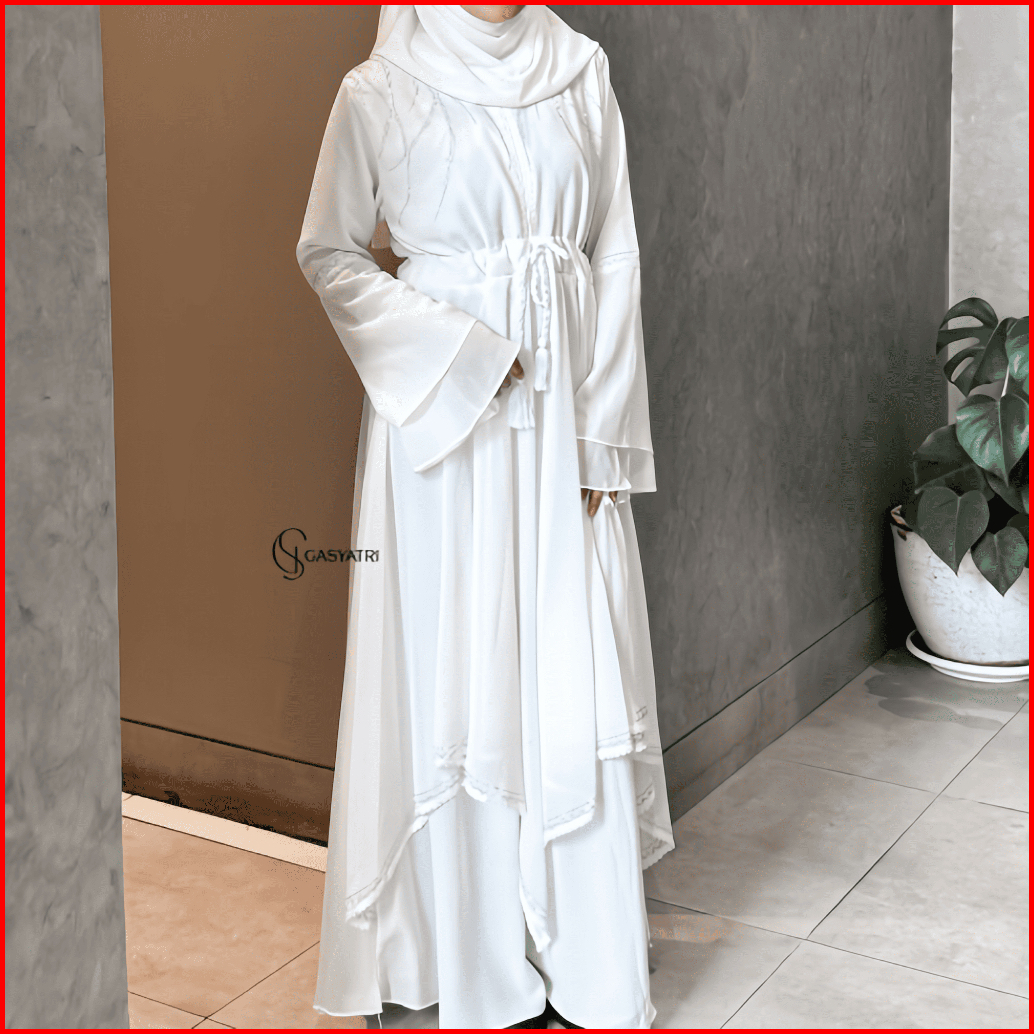 Zuyyin Abaya Gasyatri Turkey Syari Busui Remaja Dewasa Princess Payet Mata Mewah Hitam Jetblack Mix Ciffon Abaya Putih U