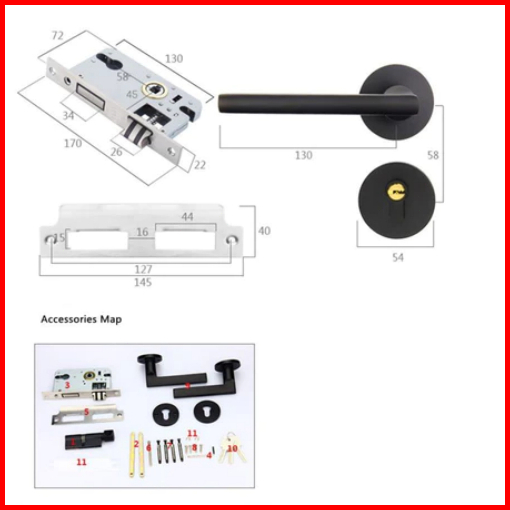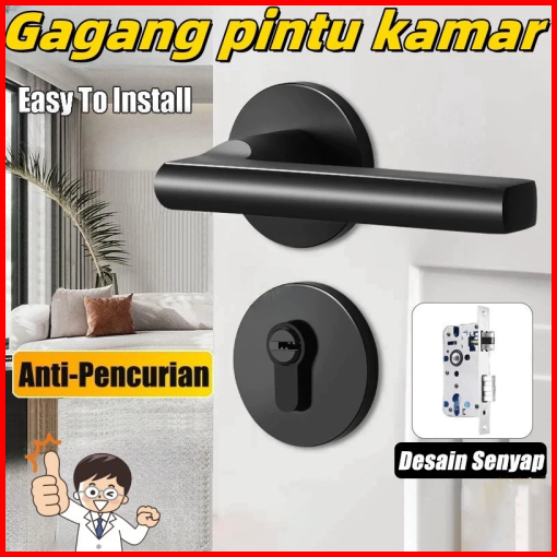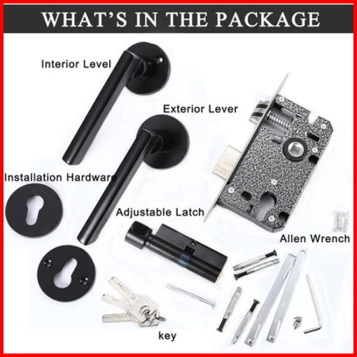 Hohodalink Gagang Pintu Gaya Eropa Hitam Full Set Kunci Pintu Premium Door Lock