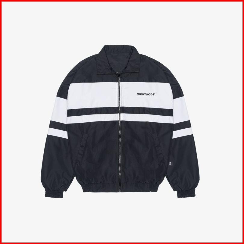 Westgods - Jaket Tracksuit Sport Tracktop Pria Wanita Hitam Strip Putih