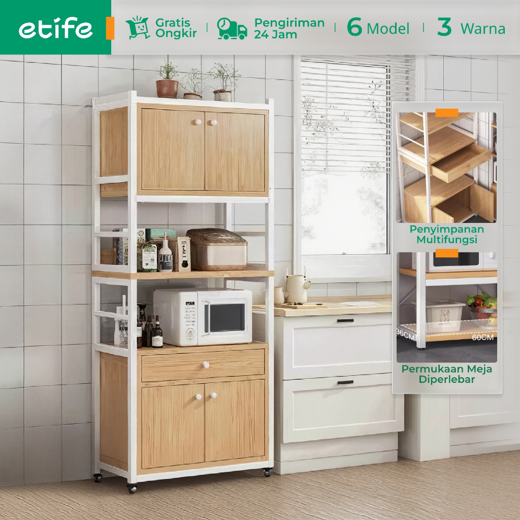 Rak Dapur E-Tife Lemari Dengan Pintu Penyimpanan Microwave Oven Multi Lapisan