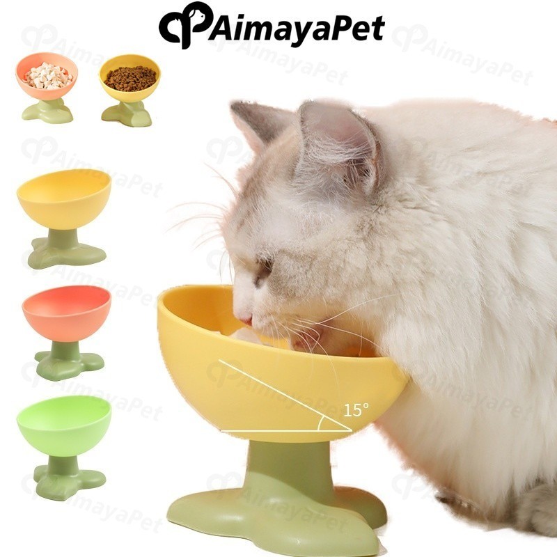 Pet Bowl Neck Protection Tempat Makan Kucing Kaki Tinggi Mangkuk Bunga