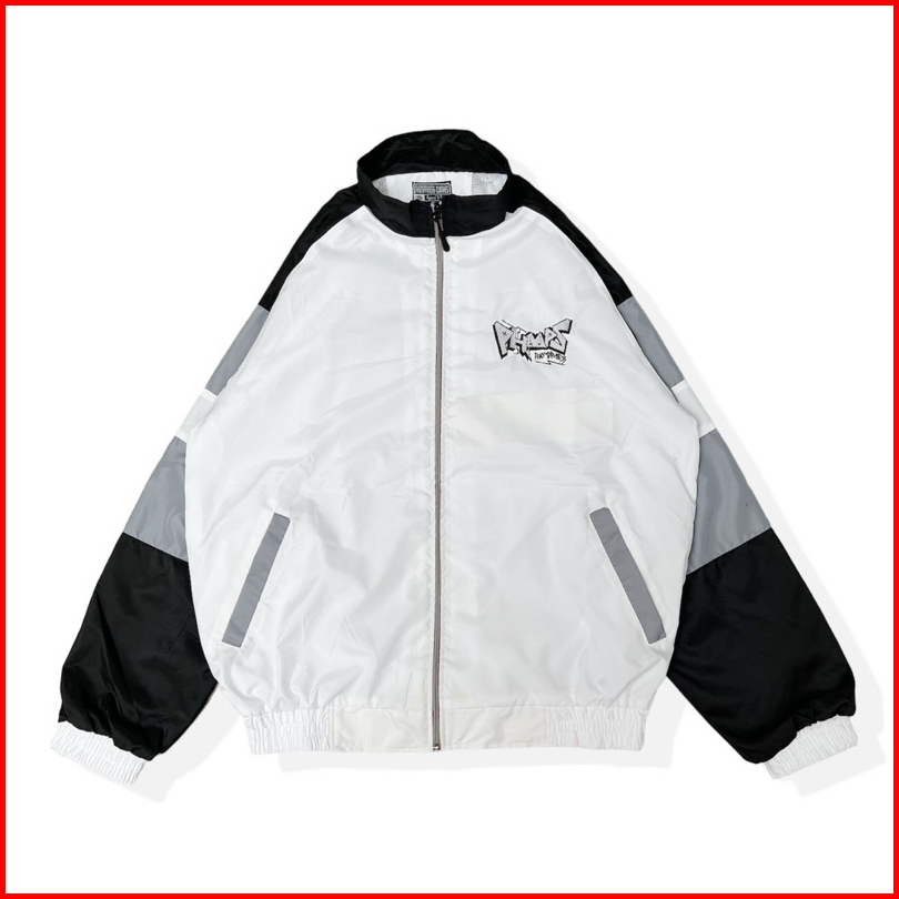 Phmps Phompphiess Jacket Retro Putih Strip Jaket Vintage Pria Wanita