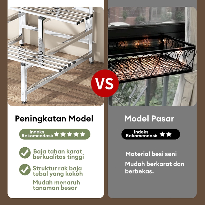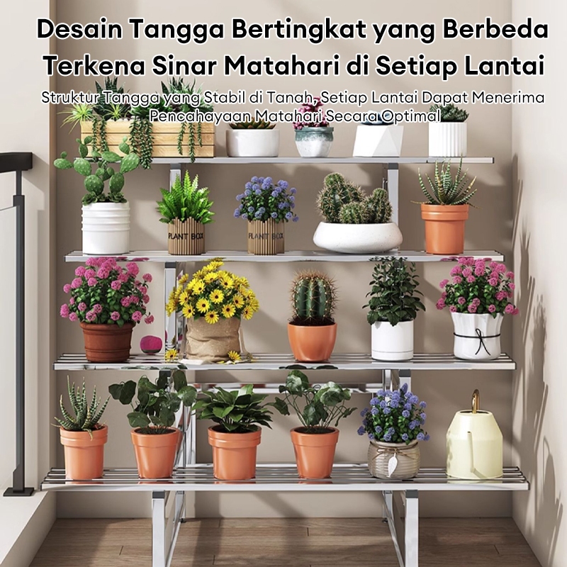 Rak Tanaman Stainless Steel 4 Tingkat Rak Bunga Susun Taman Balkon Anti Karat Kuat Multifungsi