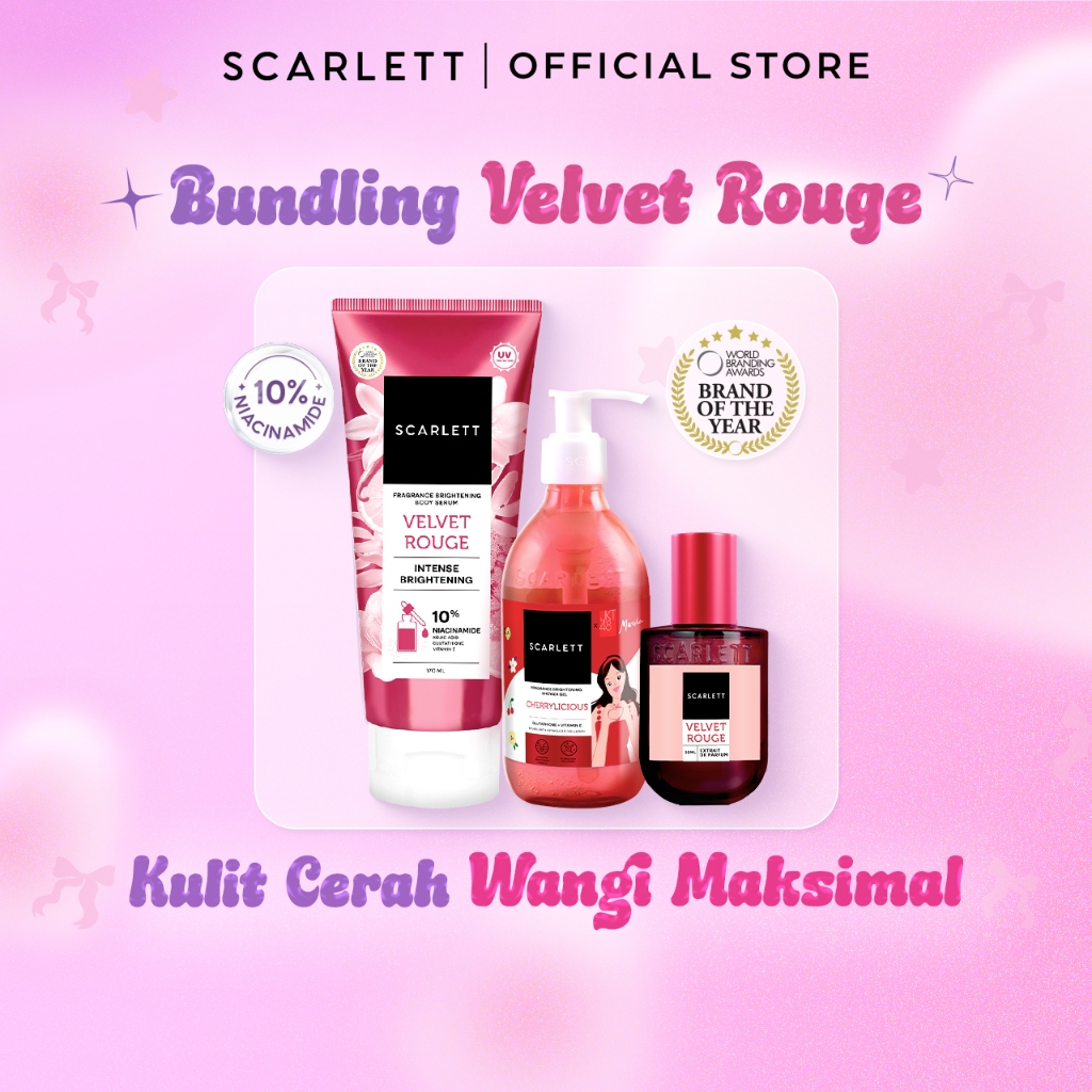 SCARLETT Bundling Fragrance Brightening Body Serum 170ml & Whitening Extrait De Parfume 30ml Velvet Rouge