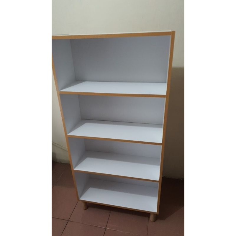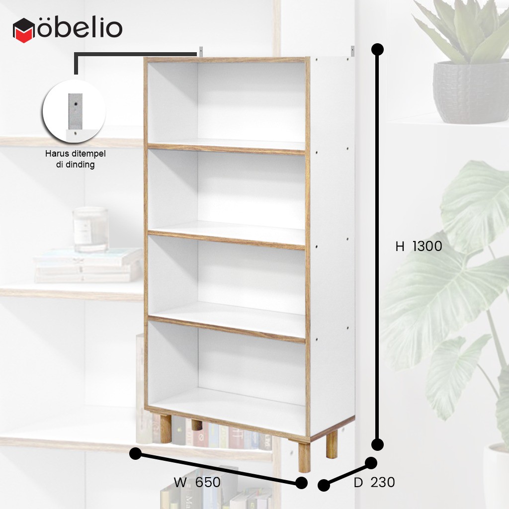 Rak Buku Portable Mobelio 4 Rak Putih List Coklat Serbaguna Anak Rumah