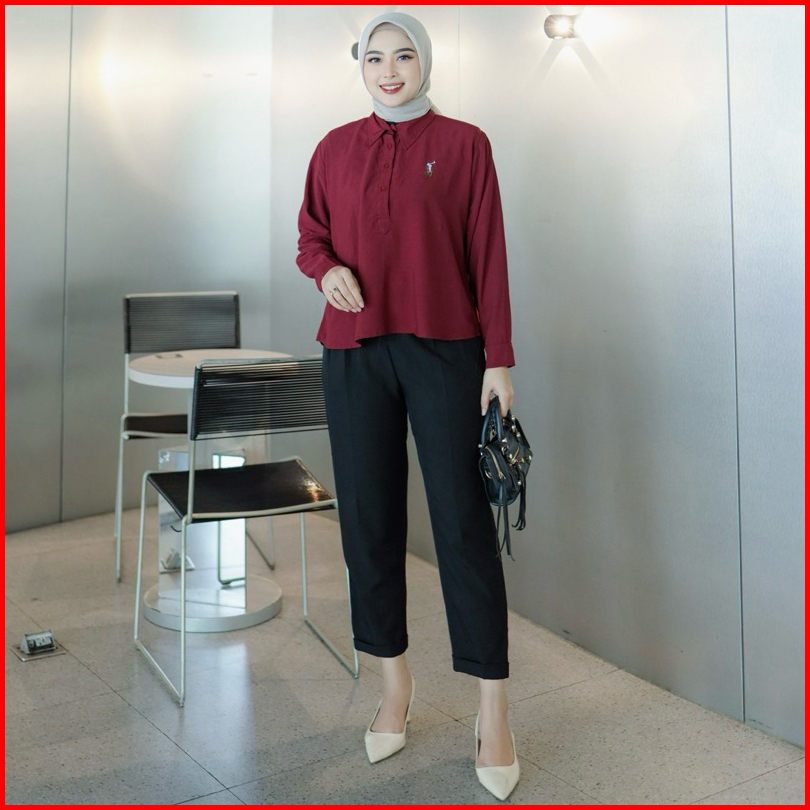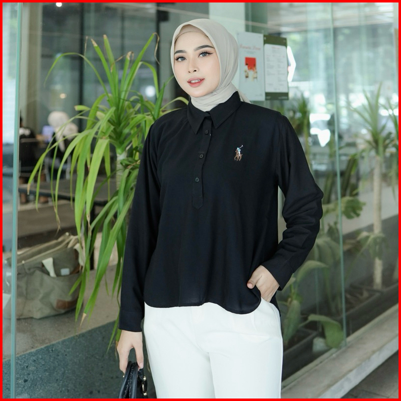 Kemeja Wanita Polos Korean Shirt Bahan Rayon High Quality Ld 110 120 130 - Zeva