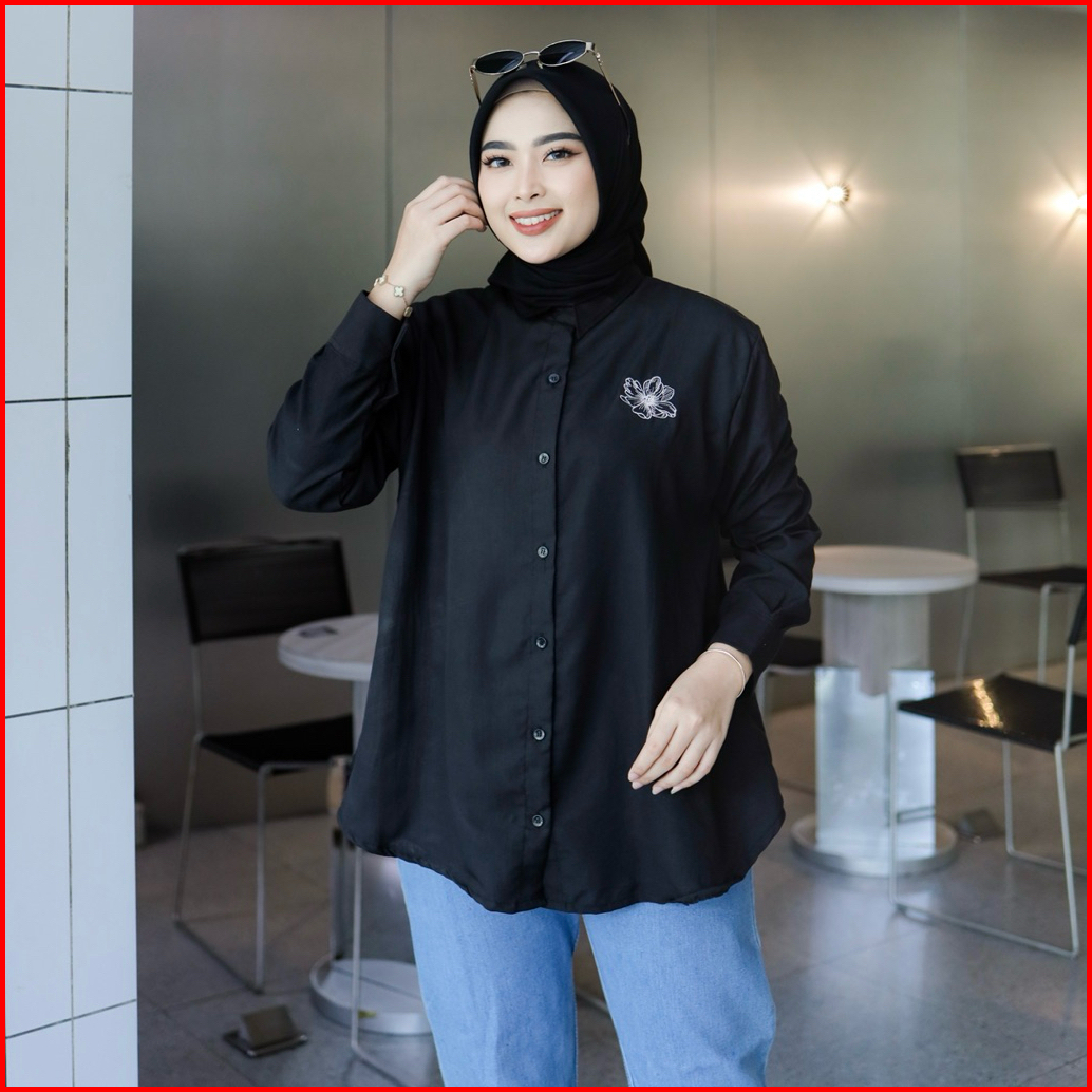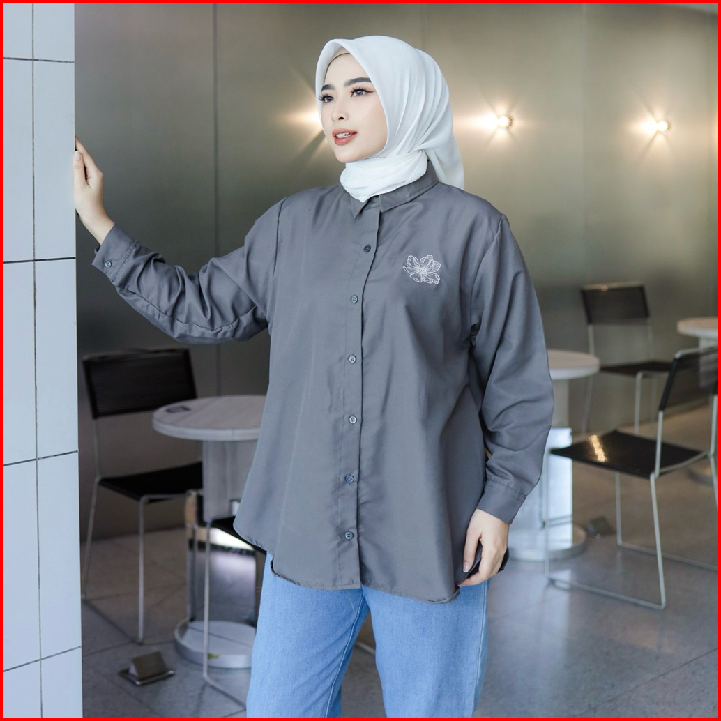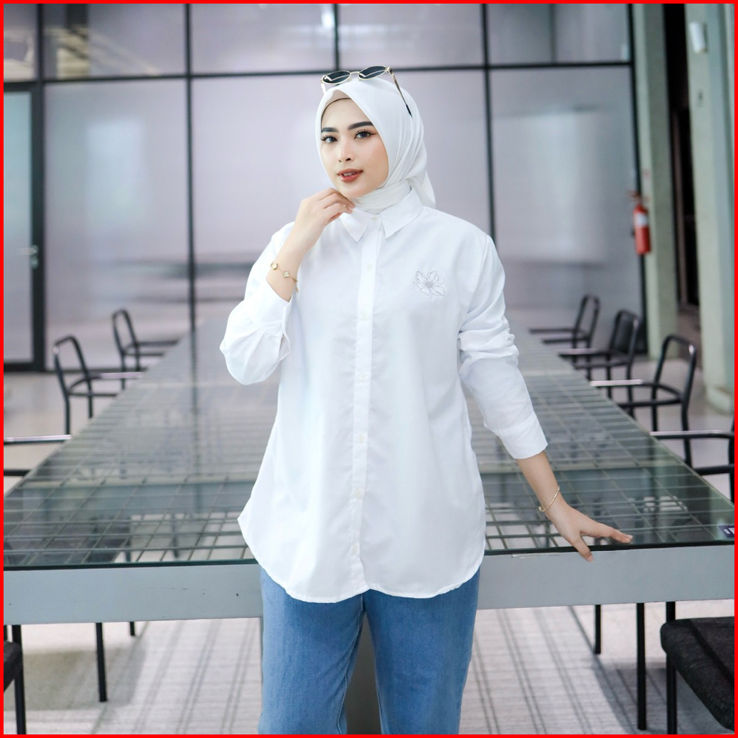 Atasan Wanita Kemeja Casual Bahan Katun Bordir Bunga - Noona