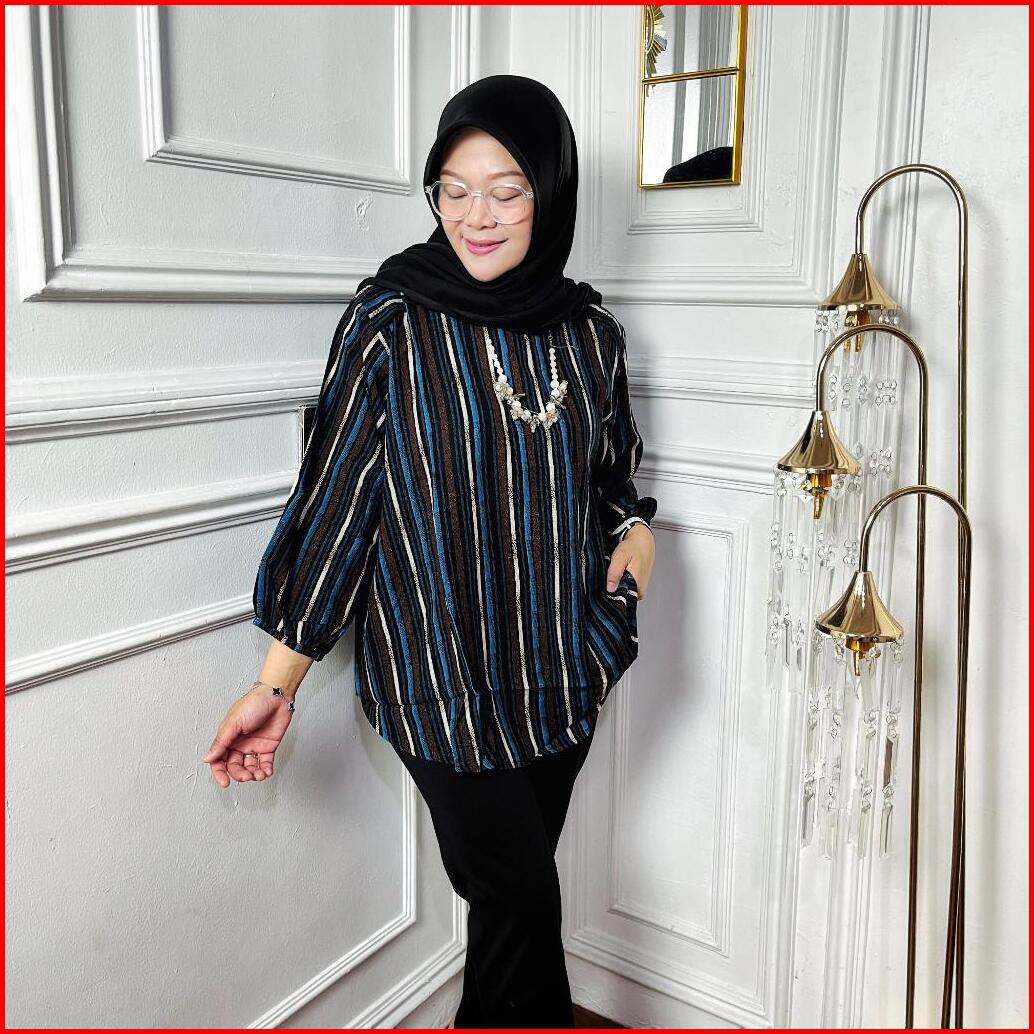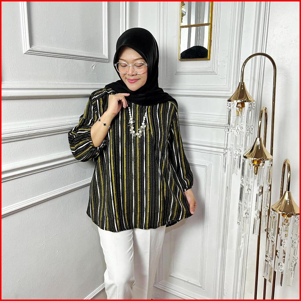 Atasan Blouse Wanita Hafisa Salur Rayon Viscose Import
