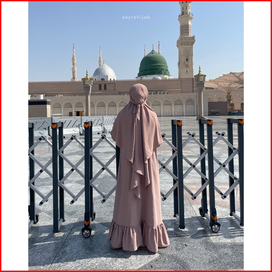 Zayra Hijab Medina Abaya Dress Gamis Abaya Umroh Dan Haji Wanita Premium Set Jilbab Hijab French Khimar Umroh Outfit Gif