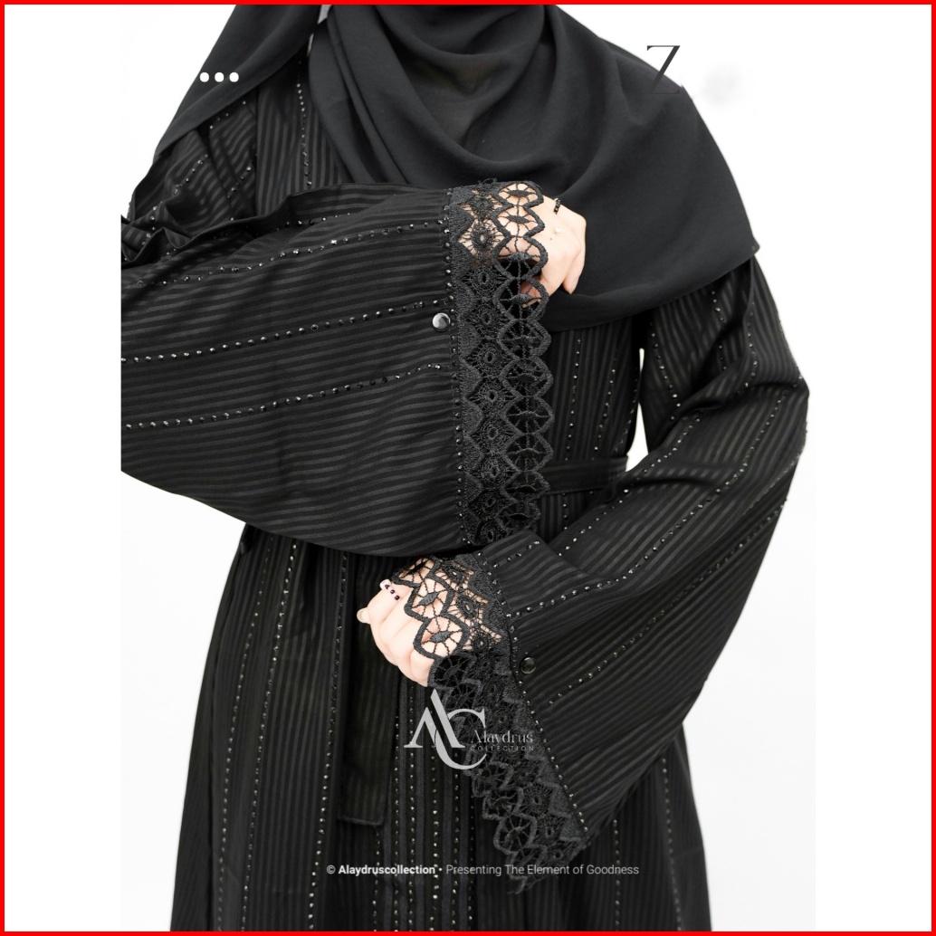 Alaydrus Collection Zara Abaya Hitam Turkey Gamis Syari Muslimah Bahan Jetblack Hitam Kombinasi Mata