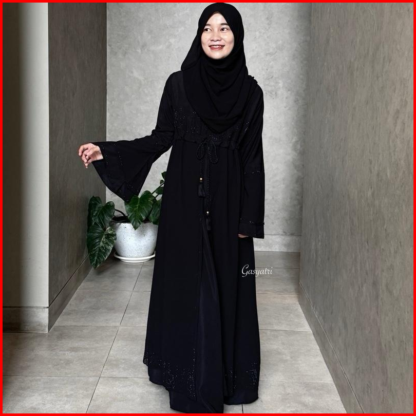 Zavira Abaya Gasyatri Turkey Slim Syari Hitam Jetblack Mix Ciffon Payet Mata Mewah