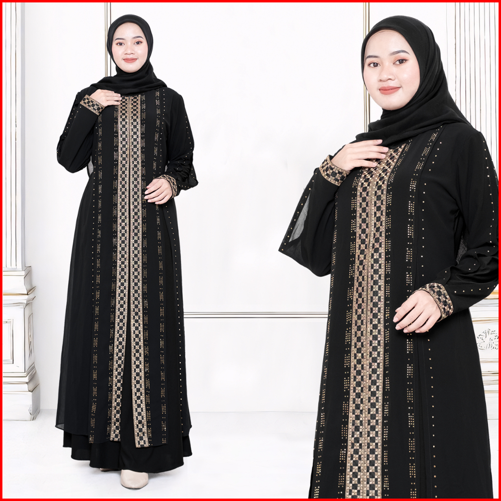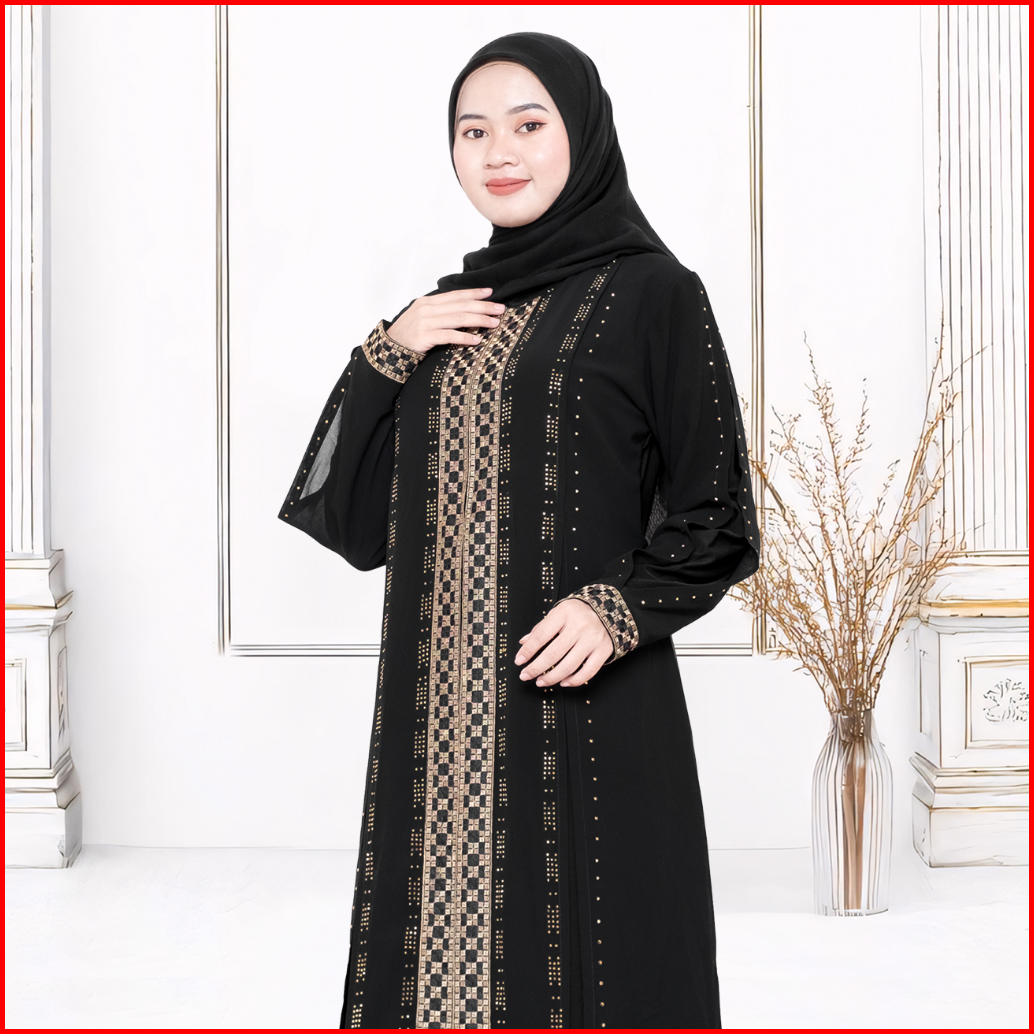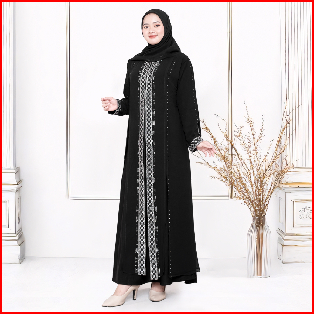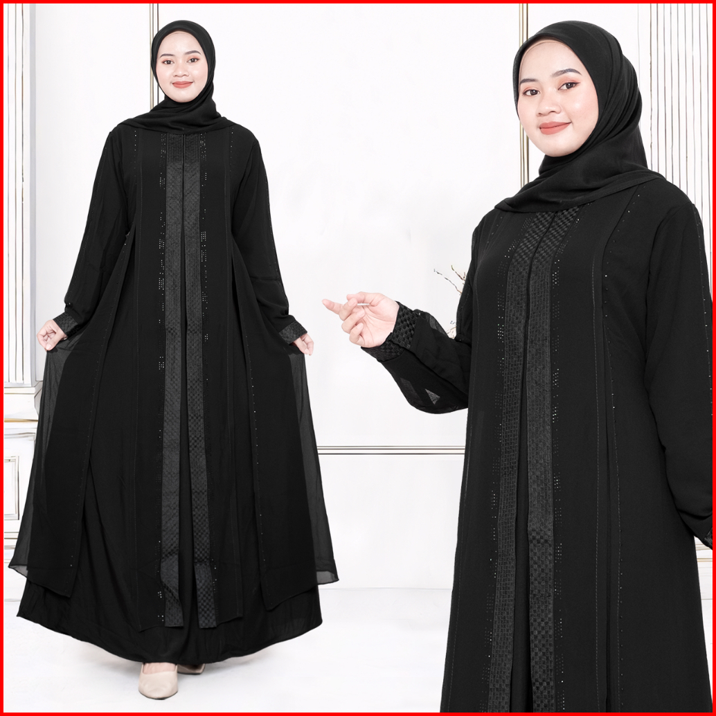 Yudico - Abaya Hitam Turkey Gamis Syari Wanita Muslimah Kekinian Bahan Jersey Mewah Elegan 476