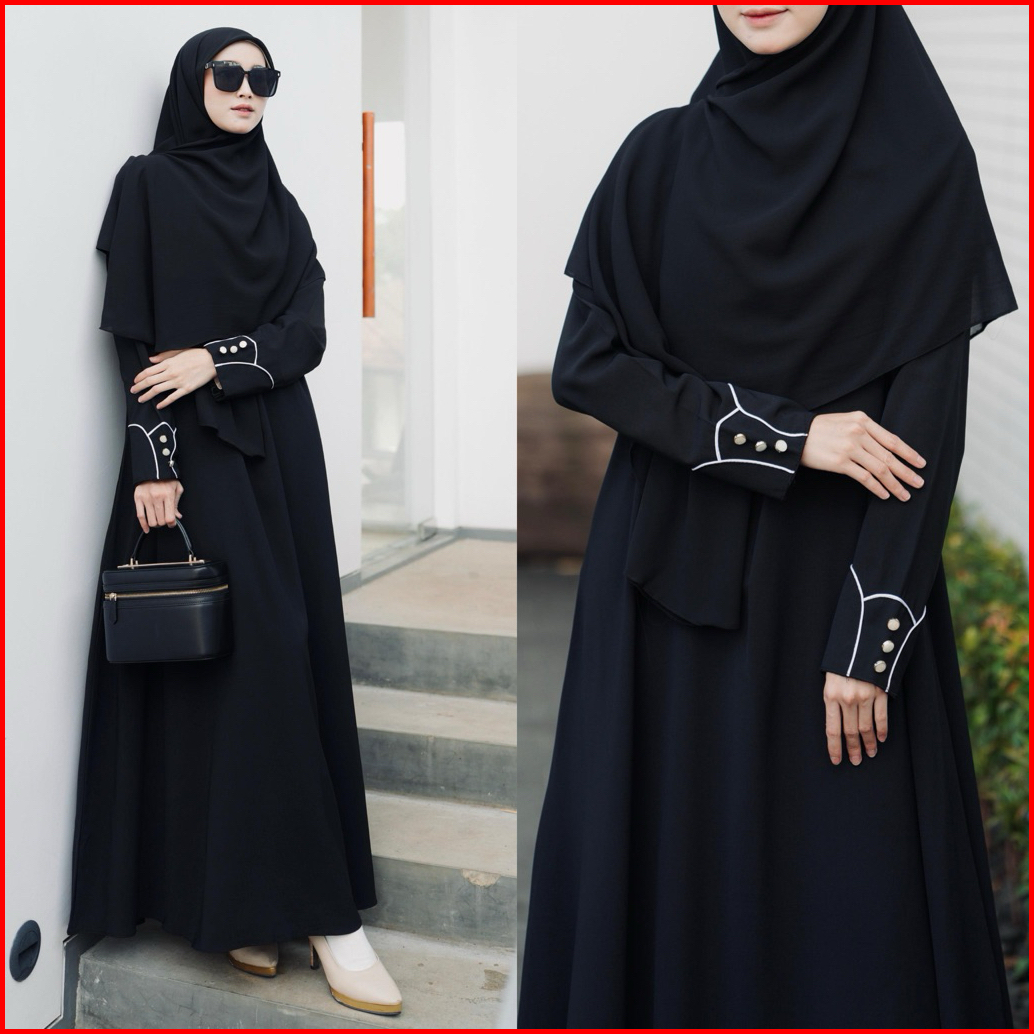 Deena Abaya By Sabrina - Gamis Wanita Muslim Bahan Anti Uv Dress Polos Kancing Pergelangan Tangan