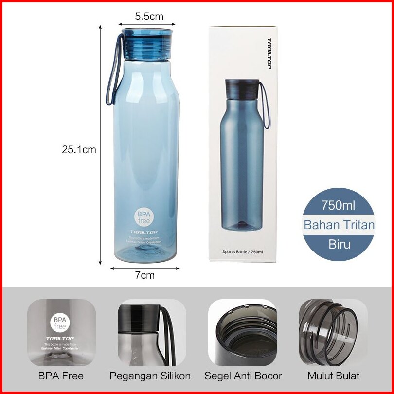 Trailtop Botol Minum 750ml Tumbler Sports Tahan Bpa Free Bocor Jatuh Tahan Panas Water Bottle