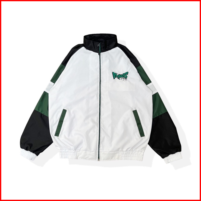 Phompphiess Jacket Sport Putih Strip Botol Jaket Retro Pria Wanita