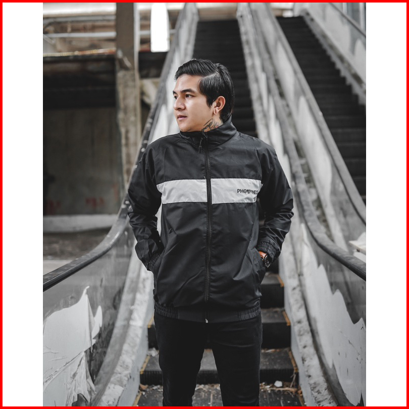 Phompphiess Jaket Tracksuit Hitam Strip Putih Jaket Tracktop Pria Wanita