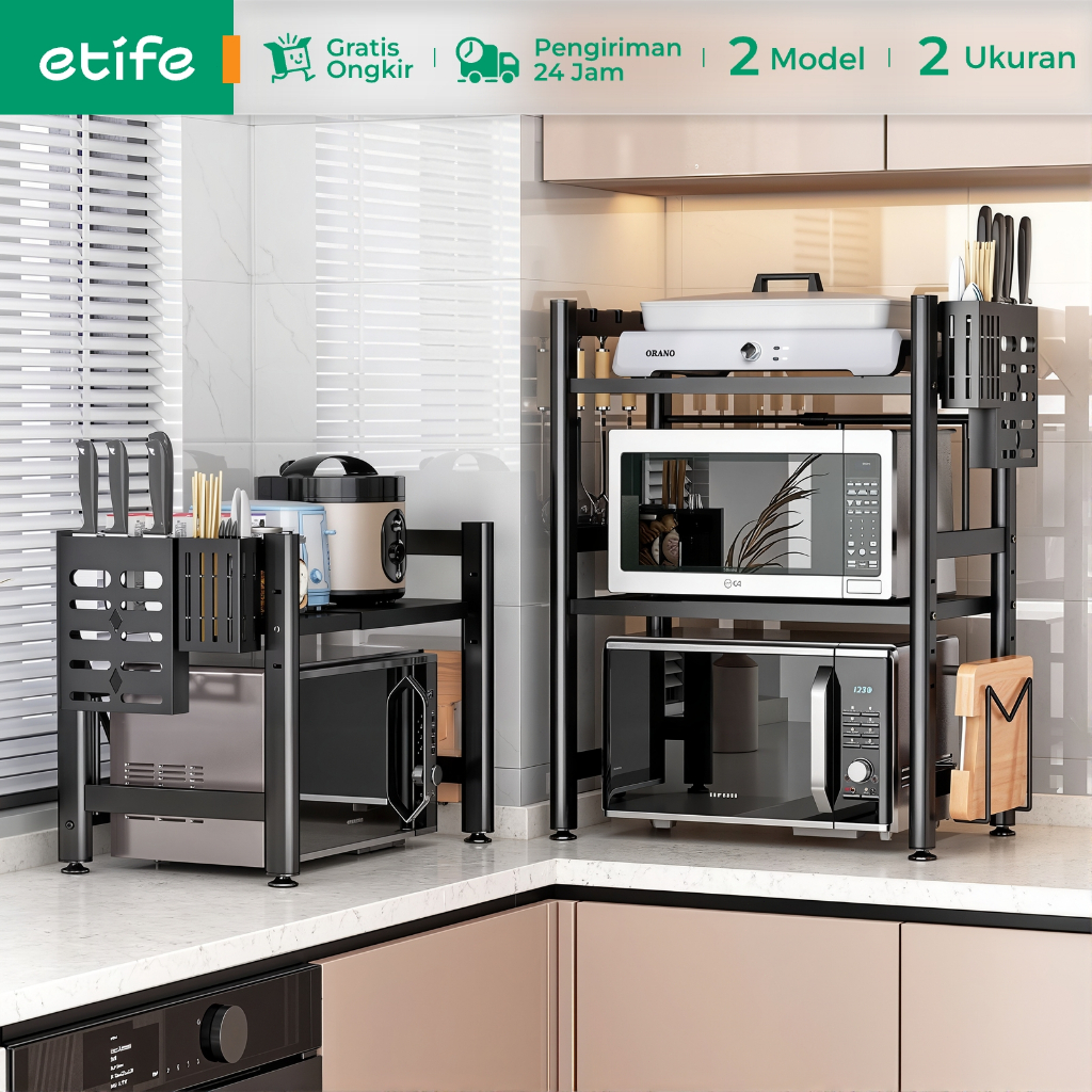 Rak Microwave Oven E-Tife Rice Cooker Serbaguna Dapur Penyimpanan Bumbu Panci