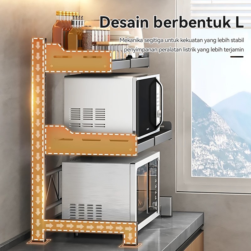 Rak Oven Microwave Perlengkapan Multifungsi Dapur Bumbu Portable Panci