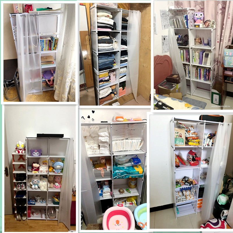 Rak Penyimpanan Rak Buku Kamar Tidur Multi-Lapis Dengan Tirai Anti Debu