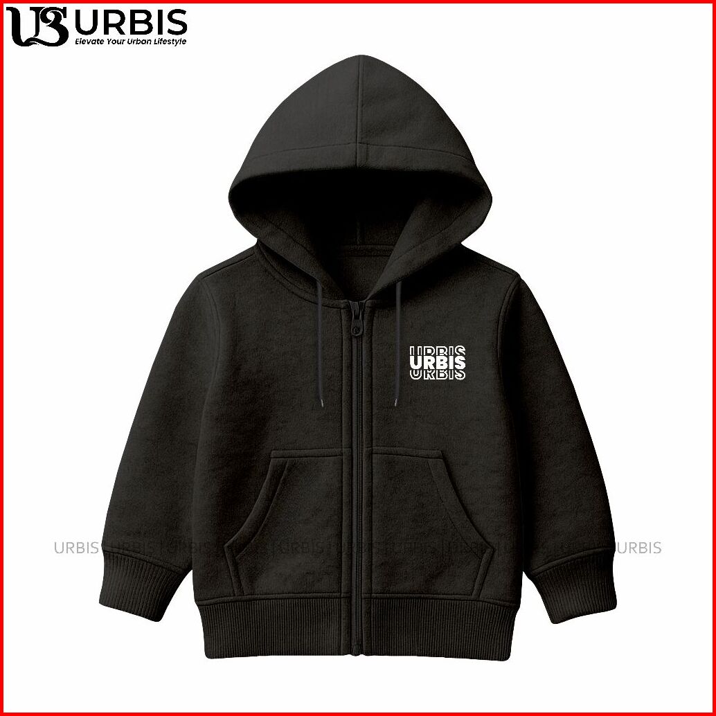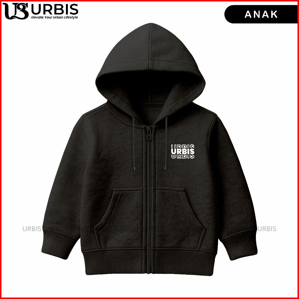 Urbis Jaket Zipper Anak Laki-laki Perempuan Usia 3-13 Tahun Sablon Urbis Outline Fleece Tebal