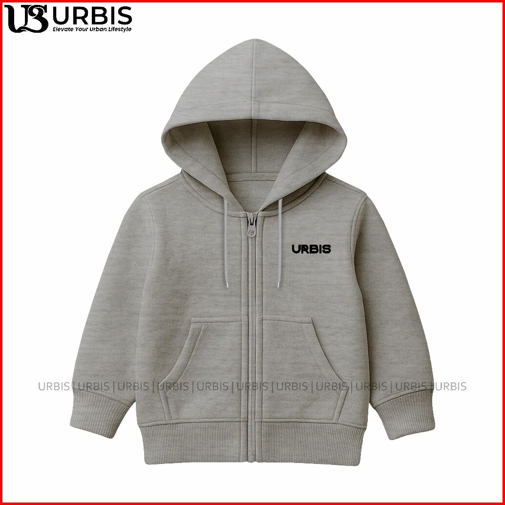 Urbis Jaket Zipper Anak Laki-laki Perempuan Usia 3-13 Tahun Sablon Urbis Fleece Tebal