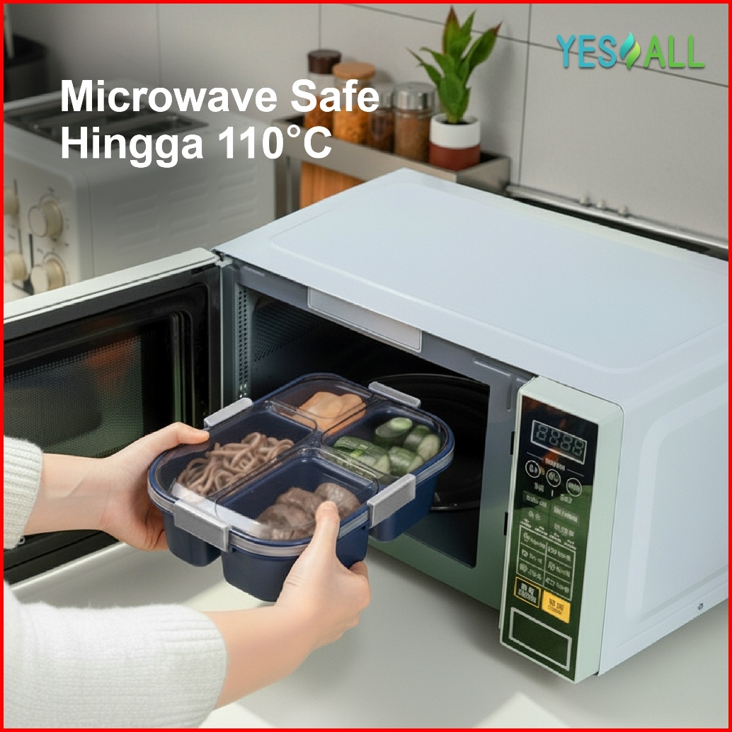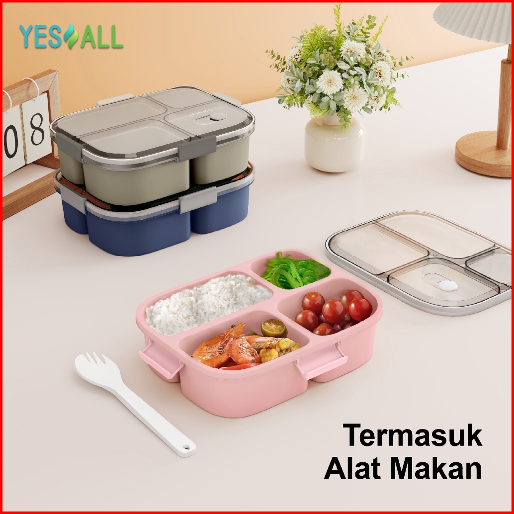 Yesall Lunch Box 1200ml Kotak Makan Bento 4 Sekat Estetik Korea Anti Bocor Sehat Tempat Bekal Makanan Ocean Blue Latte B