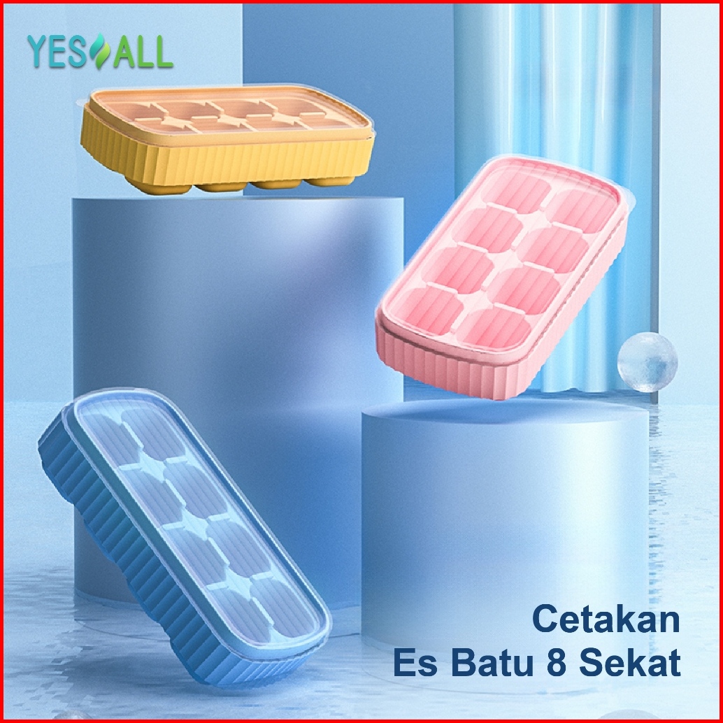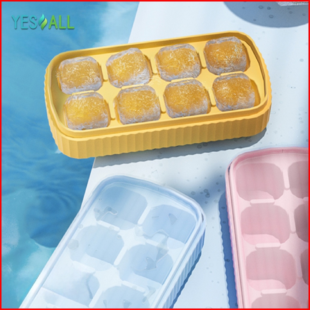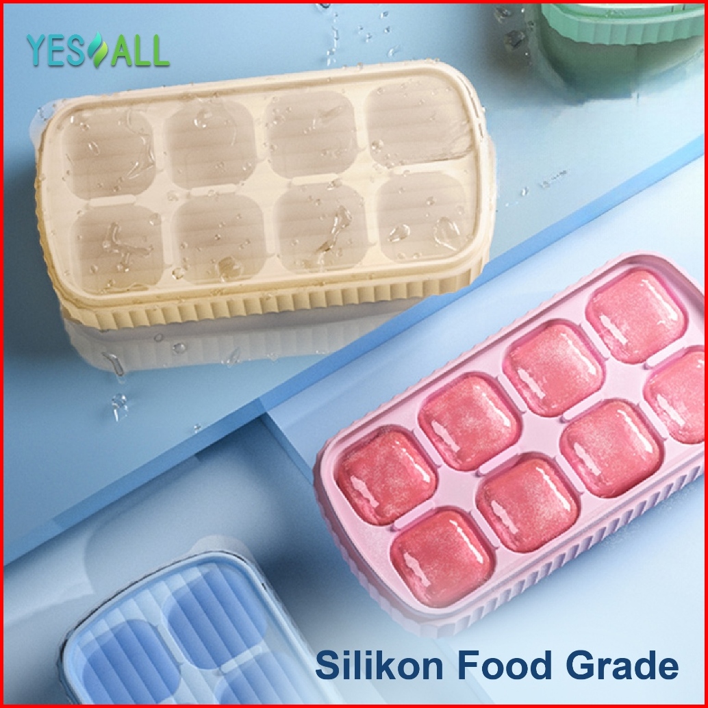 Yesall Cetakan Es Batu Silikon Tutup - Ice Maker Pembuat Es Batu Mini Silicone Portable Kotak Penutup - 8 Sekat