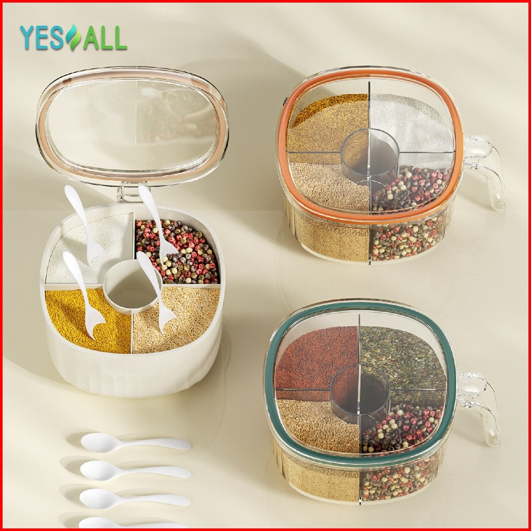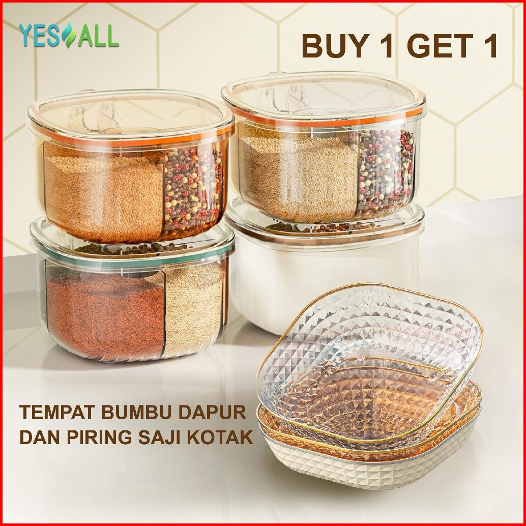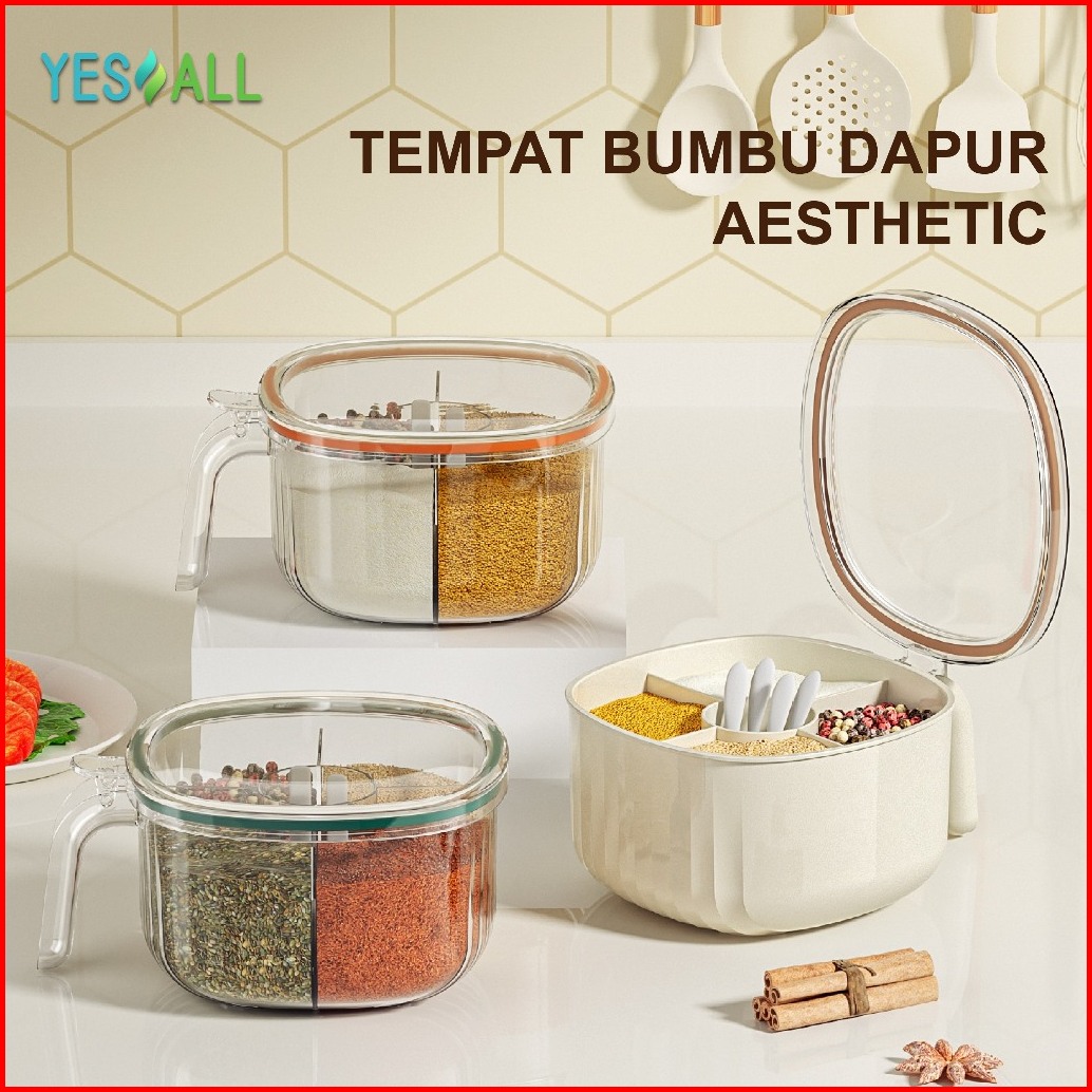 Yesall Tempat Bumbu Dapur Set 4 In 1 Free Sendok Piring Aesthetic Wadah Toples Bumbu Dapur 4 Sekat Tempat Kotak Penyimpa