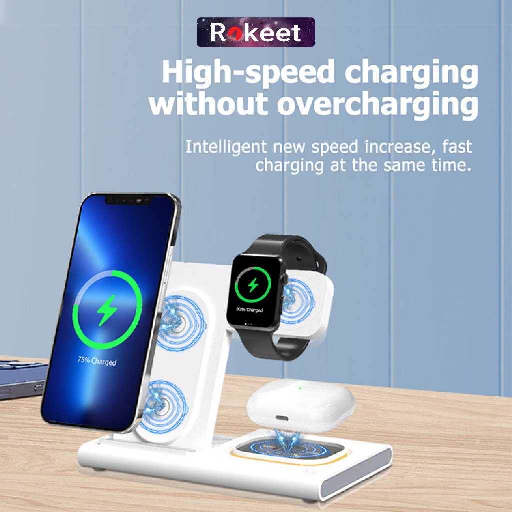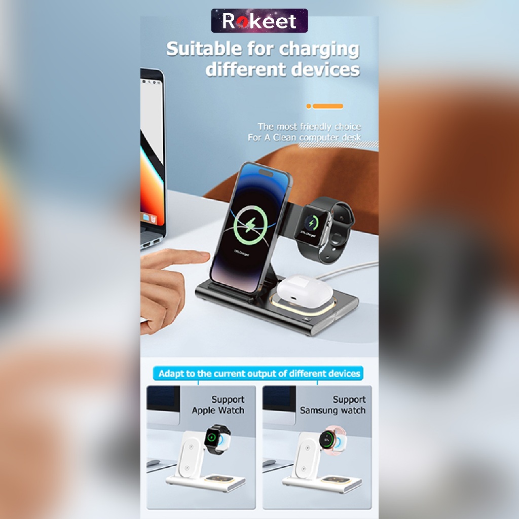 Wireless Charger Foldable, 4in1 Rokeet Magnetic, Fast Charging Stand