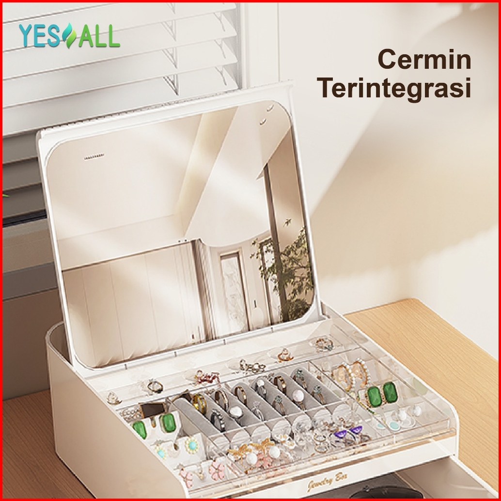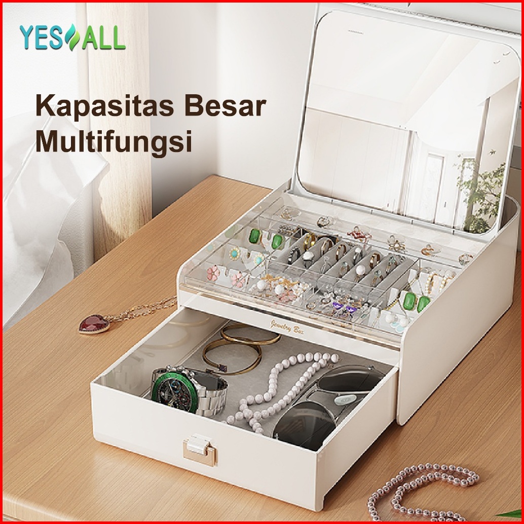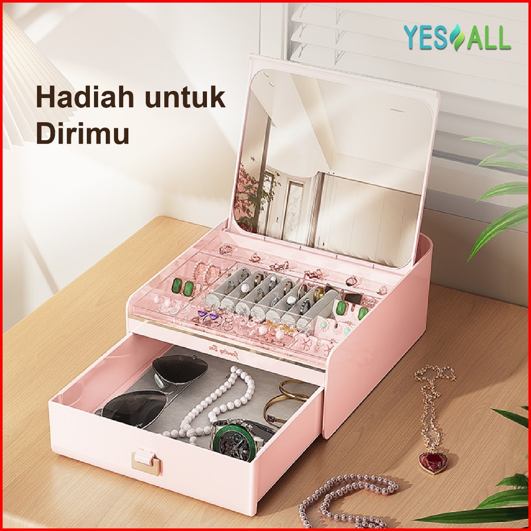 Yesall Kotak Otomatissekali Tarik Terbuka Cermin Besardua Lapisan Kapasitas Besardesain Elegan Premiumwhite Pink Goldhad