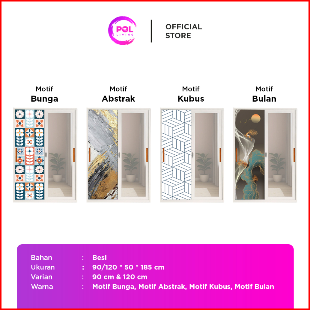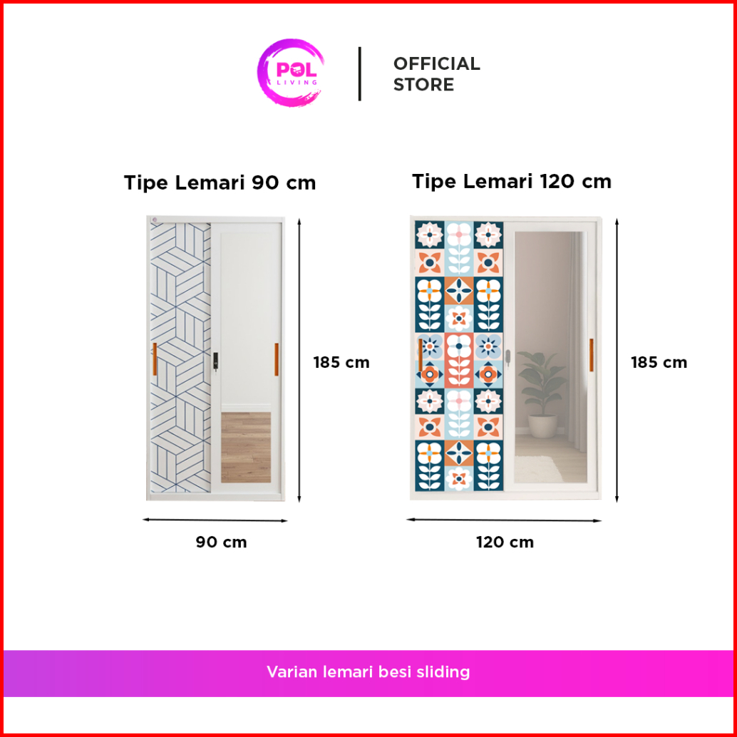 Pol - Lemari Pakaian Besi Dengan Cermin Sliding 2 Pintu Full Motif