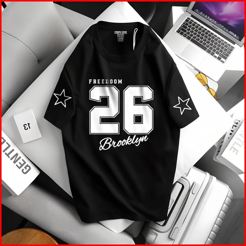 Enami Suns - Kaos Distro Lengan Pendek 26 Freedom Bahan Cotton 24s Style Kasual Pria - Oblong