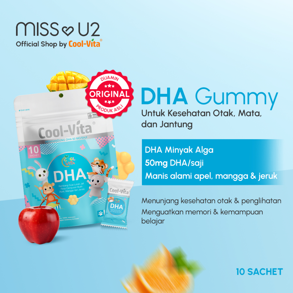 Coolvita Original 1 Pouch Dha Gummy Rasa Apel Mangga Jeruk Suplemen Otak Anak Coolvita Dha Gummy Otak Fokus Anak