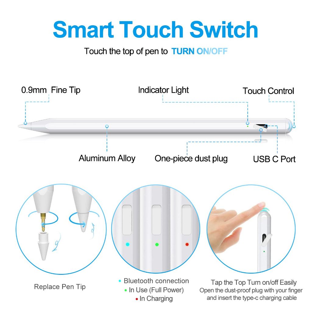 Stylus Pen Active, Palm Rejection, Tilt Sensitive Goopodos Compatible With Ipad Gen 9/10/11