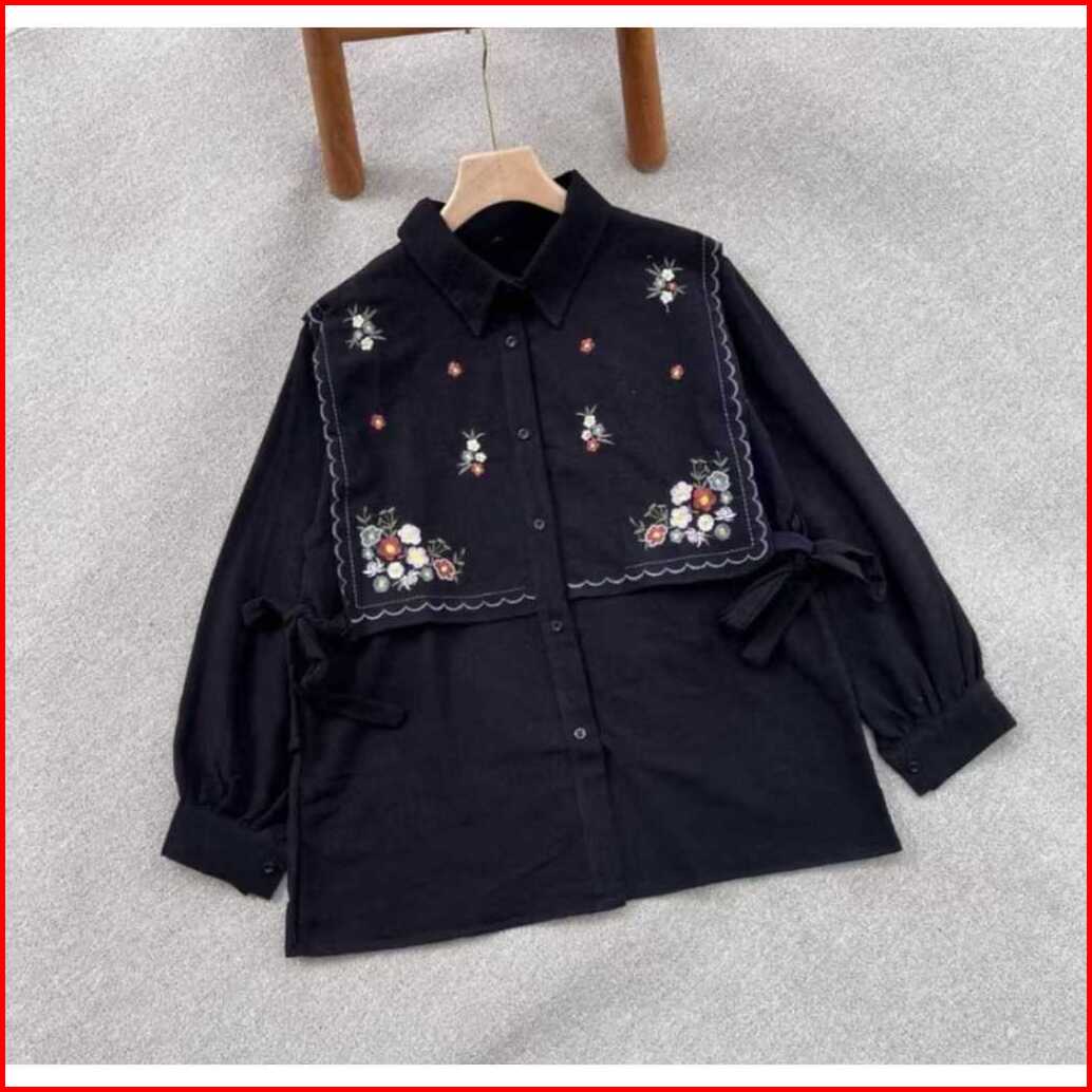 Baju Atasan Wanita Terbaru Bordir Bunga Kemeja Wanita Jumbo
