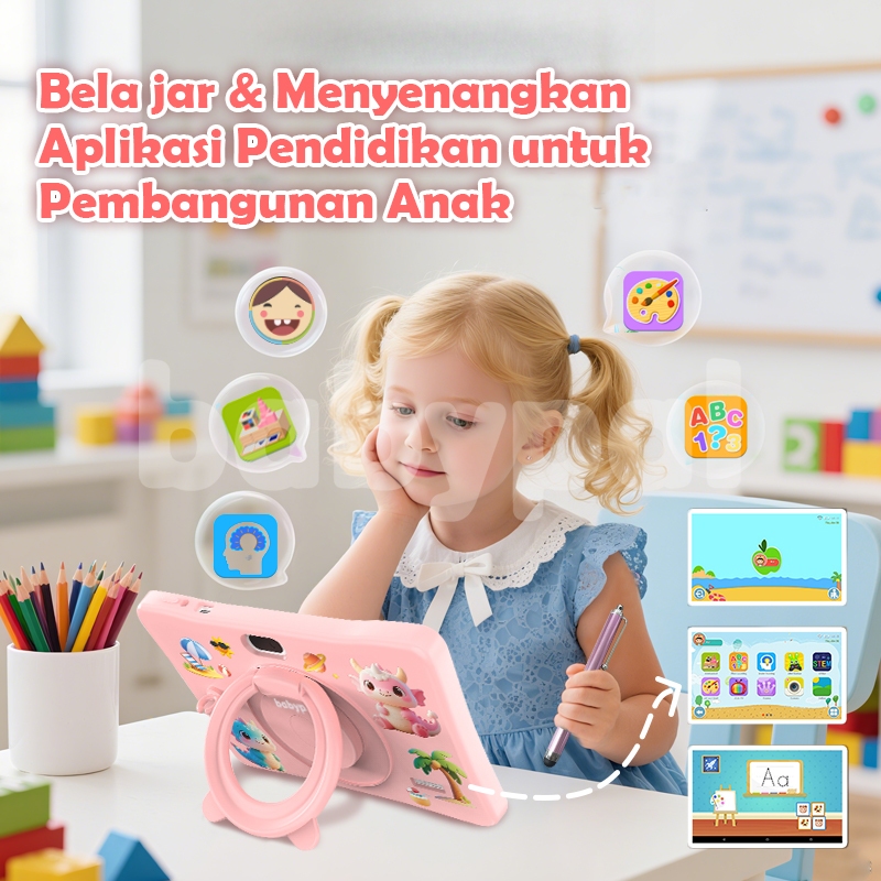 Tablet Anak 7inch, 3200mah Battery Babypal B09 Android 14, Parental Control, Accessories