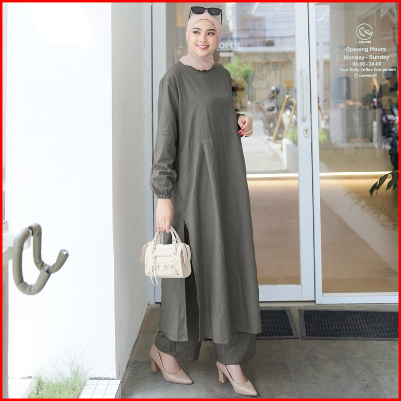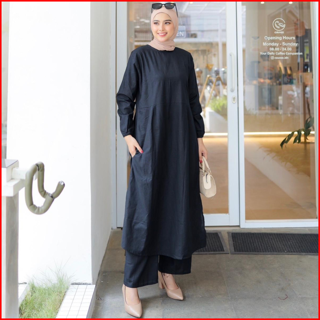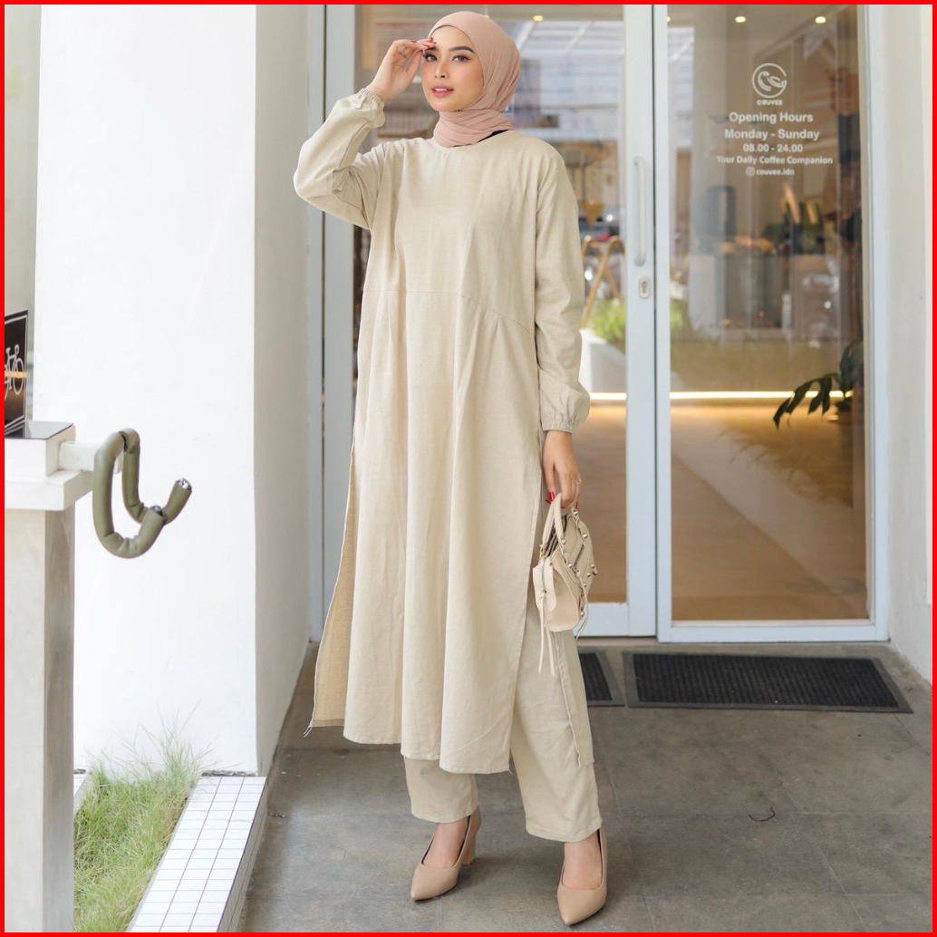 Setelan Long Tunik Celana Kulot Oneset Bahan Linen Fashion Wanita Terbaru Baju Setelan Casual - Joana
