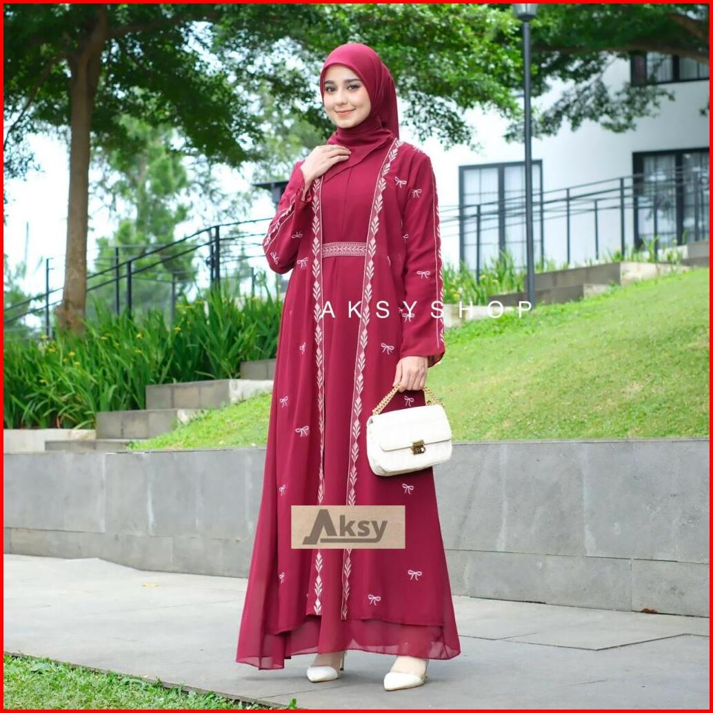 Luna Abaya Gamis Bordir Terbaru Bahan Ceruty Baby Doll Outfit Kekinian Wanita Muslim 2025