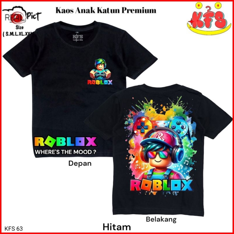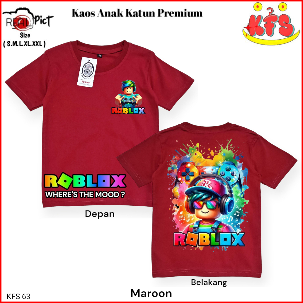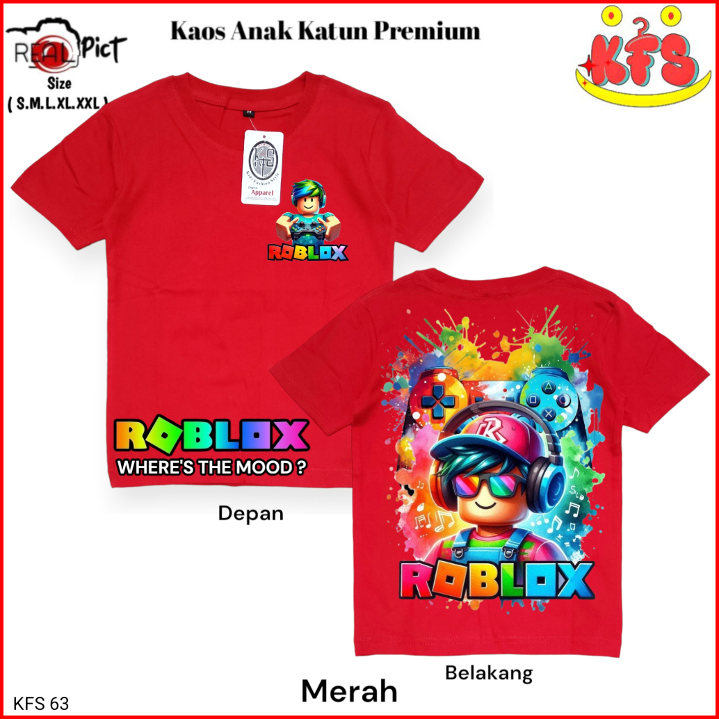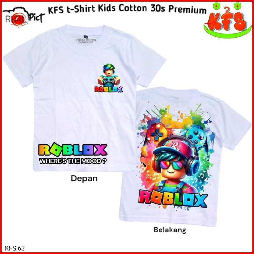 Koas Roblox Anak Laki-laki Keren Gambar Depan Belakang Baju T-shirt Cotton 30s Keren Kfs 63