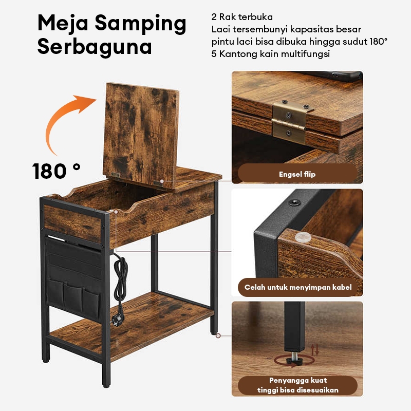 Meja Samping Tempat Tidur Aesthetic Bmzar Meja Kopi Usb Charger Multifungsi