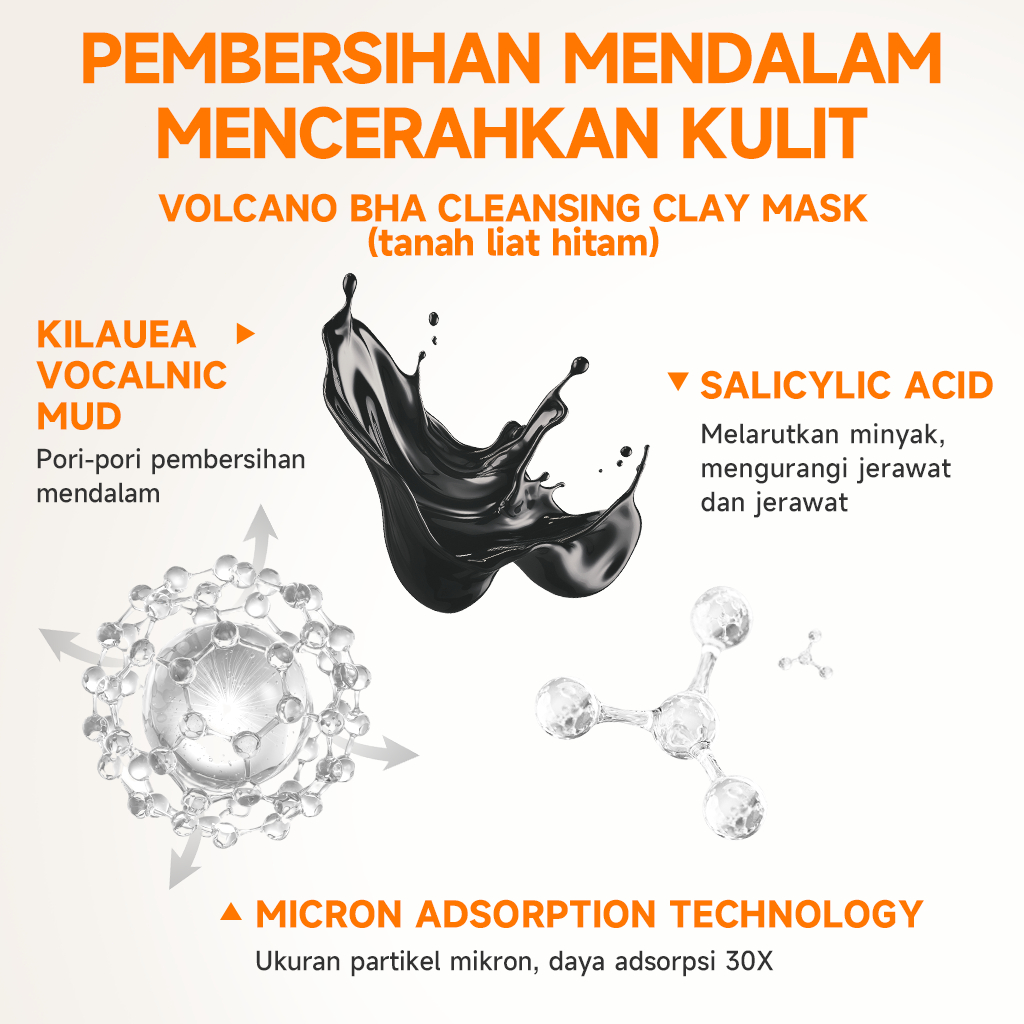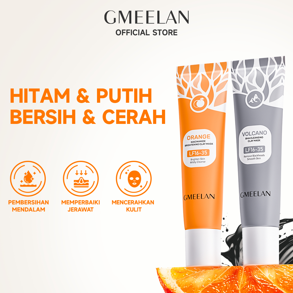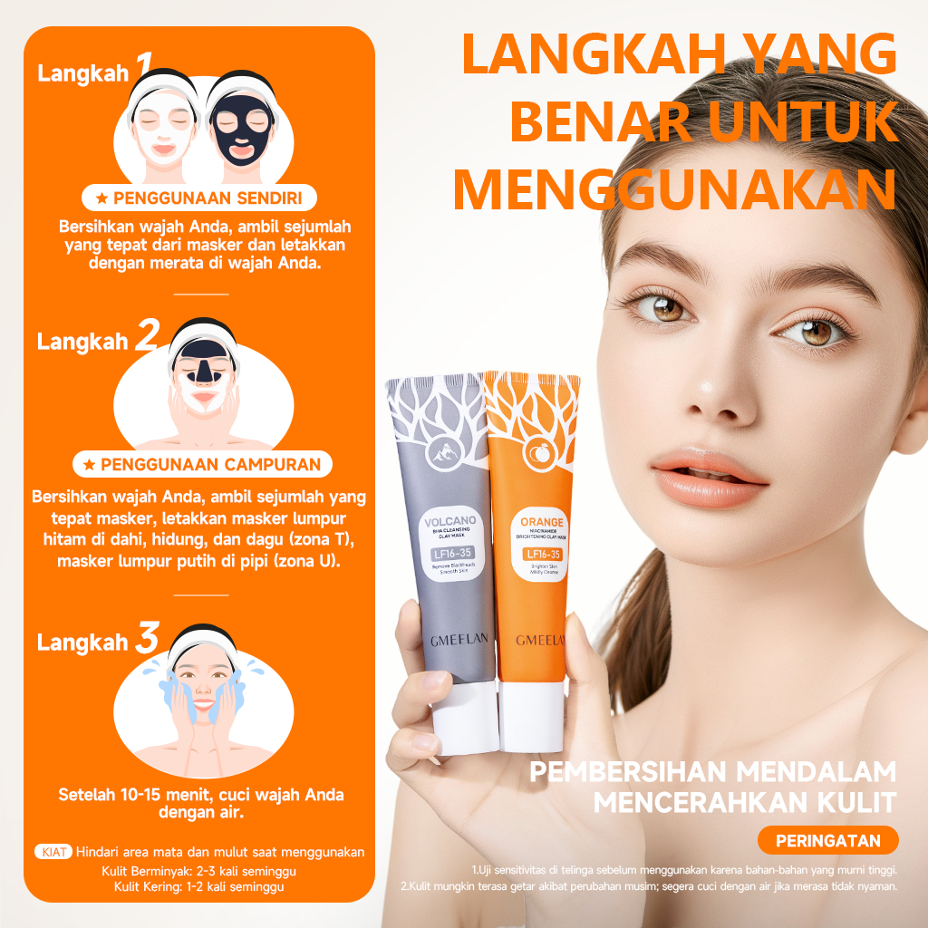GMEELAN Black & White Double Effects Mud Mask Orange Niacinamide Brightening Clay Mask Volcano BHA Cleansing Clay