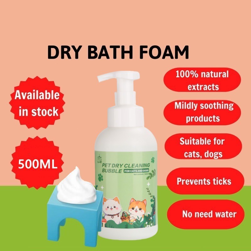 Shampoo Kering 500ml Tanpa Bilas Penghilang Bau Bukipet Pet Dry Cleaning Foam