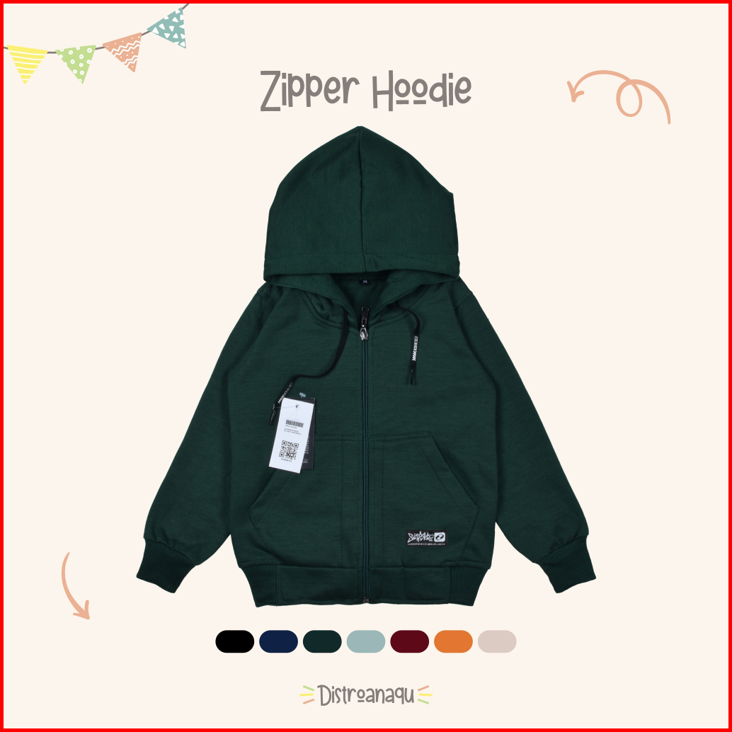 Hoodie Zipper Polos Anak Laki-laki Perempuan Usia 1-12 Tahun