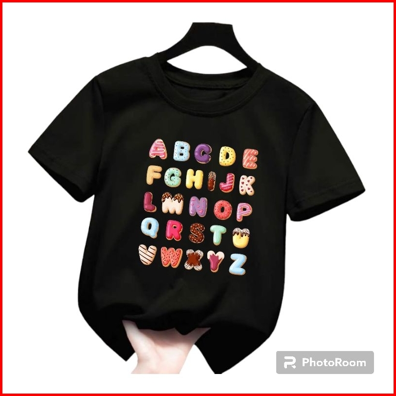 Huruf Alphabet Kaos Anak Katun Halus 2-10 Tahun